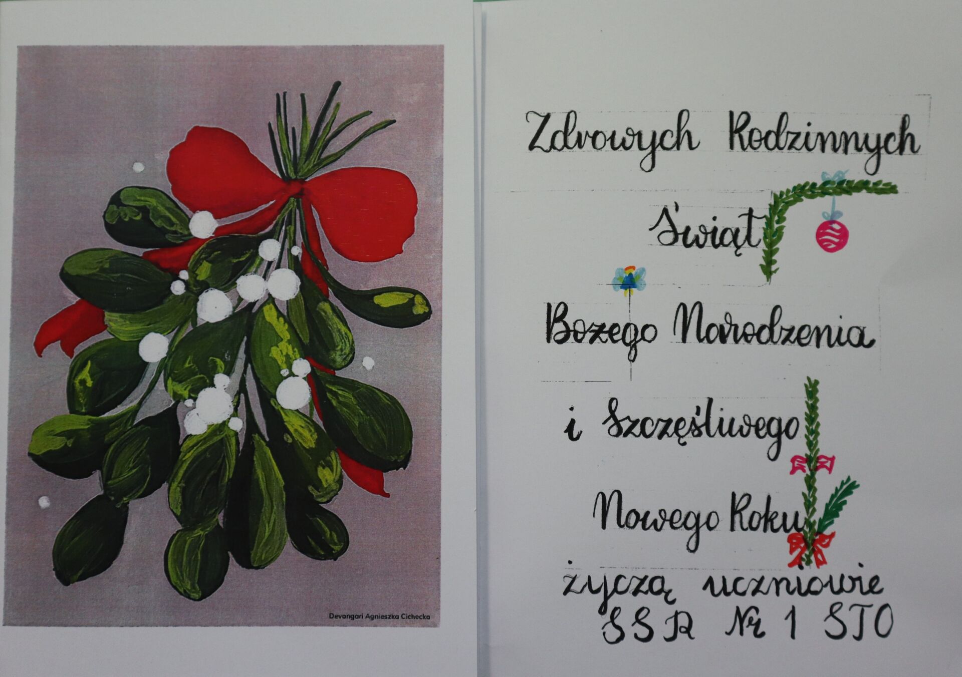 Serdeczne życzenia radosnych i rodzinnych świąt Bożego Narodzenia składają młodzi adepci kaligrafii.