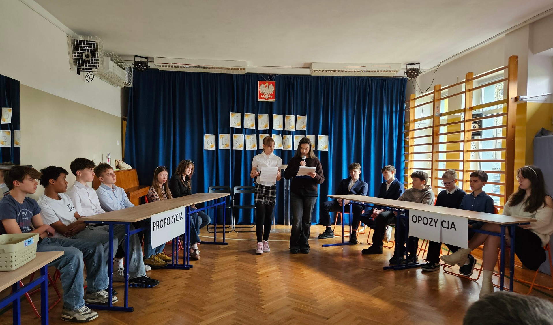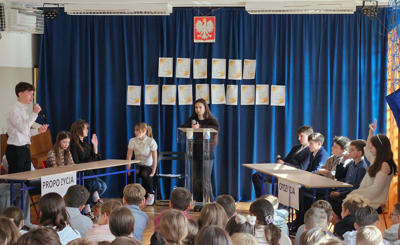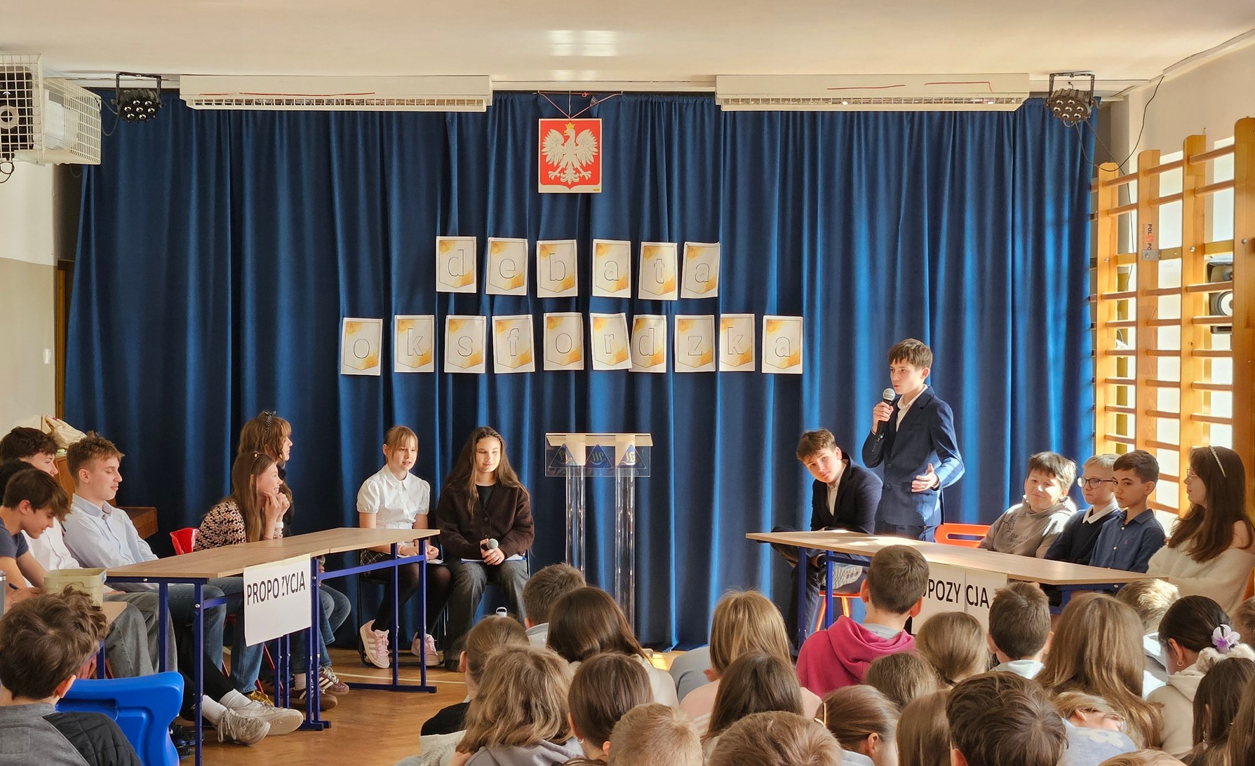 W piątek 10 kwietnia w naszej szkole odbyła się długo oczekiwana przez uczniów debata oksfordzka z tezą “Przyjaźń on-line nie jest prawdziwa”. Przedstawiciele klas 7M, 7L i 8 dyskutowali z zaangażowaniem. Publiczność słuchała z dużym zainteresowaniem argumentów obu grup. Na koniec większość zdecydowała, że przyjaźń on-line jednak może być prawdziwa.