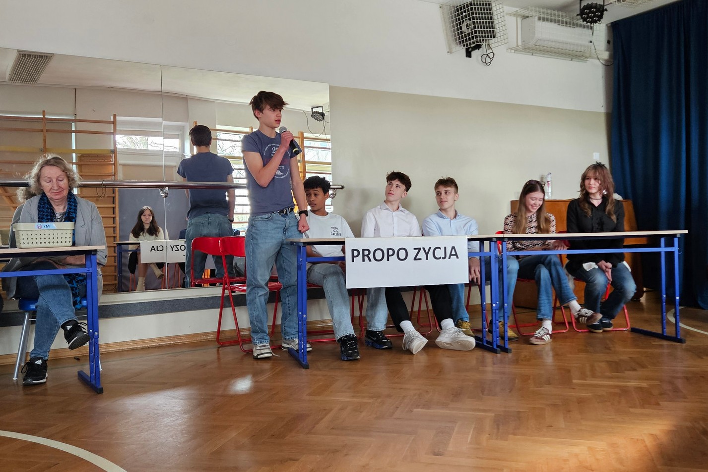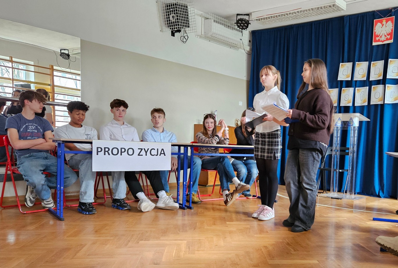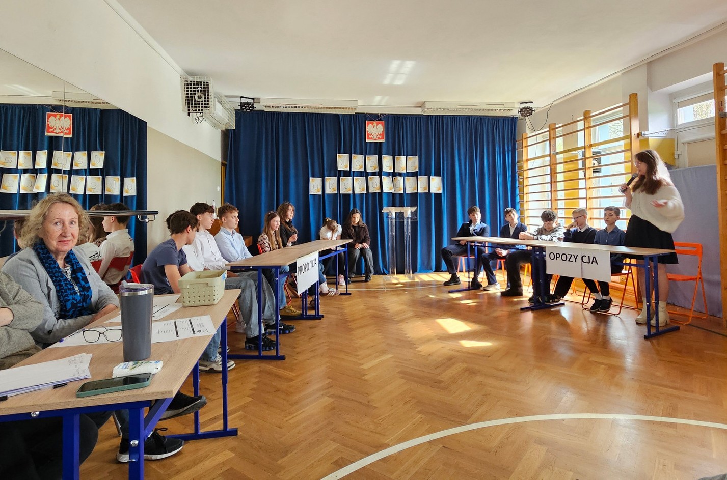 W piątek 10 kwietnia w naszej szkole odbyła się długo oczekiwana przez uczniów debata oksfordzka z tezą “Przyjaźń on-line nie jest prawdziwa”. Przedstawiciele klas 7M, 7L i 8 dyskutowali z zaangażowaniem. Publiczność słuchała z dużym zainteresowaniem argumentów obu grup. Na koniec większość zdecydowała, że przyjaźń on-line jednak może być prawdziwa.