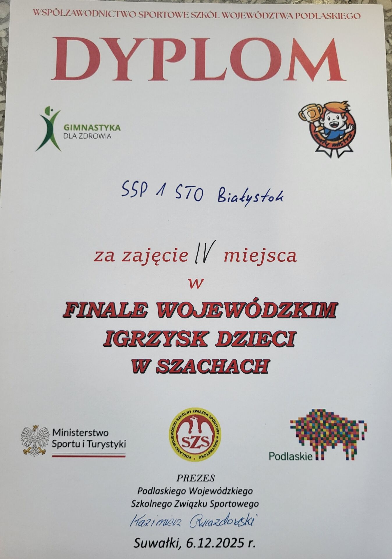 IV miejsce w Finale Wojewódzkim Igrzysk Dzieci w szachach!