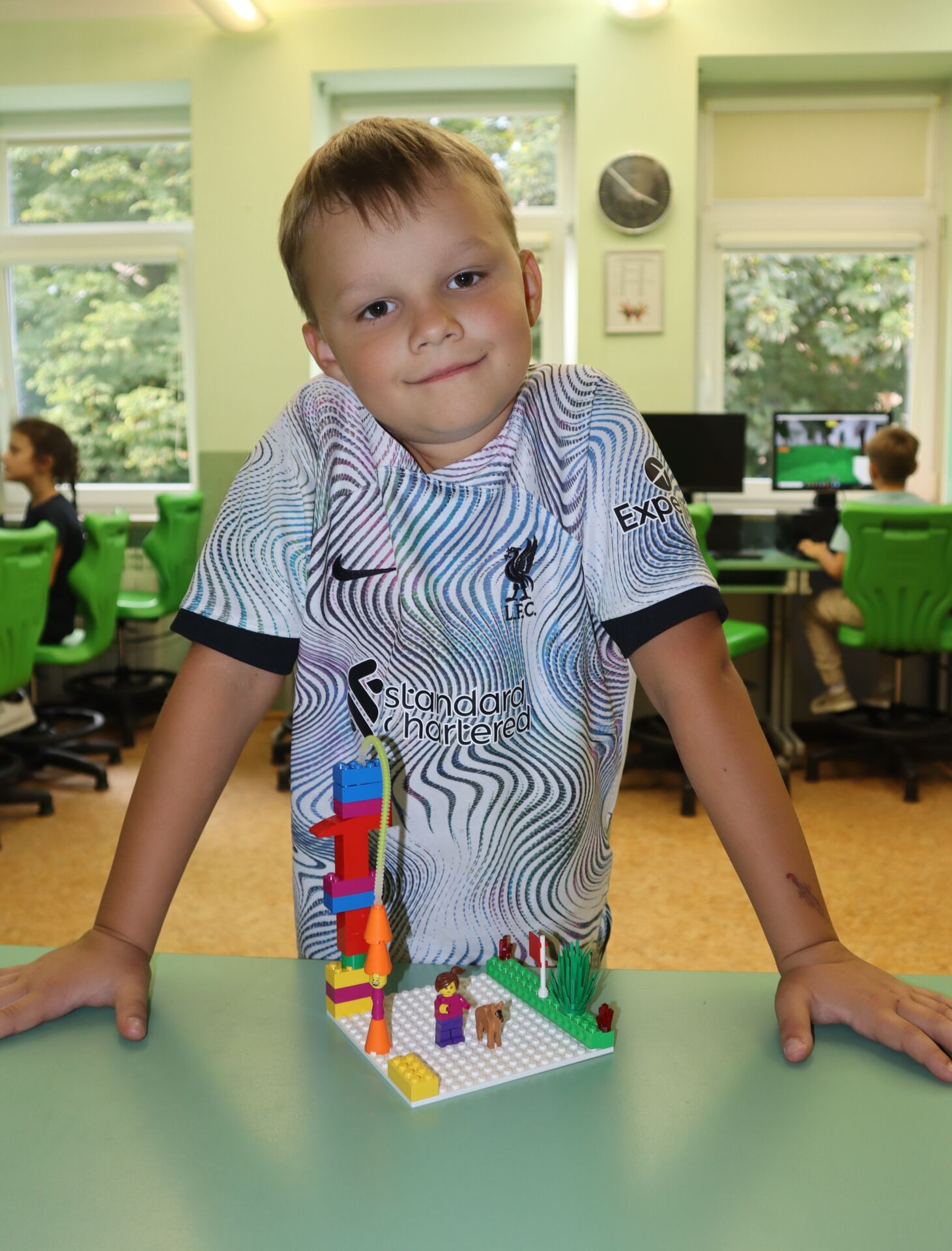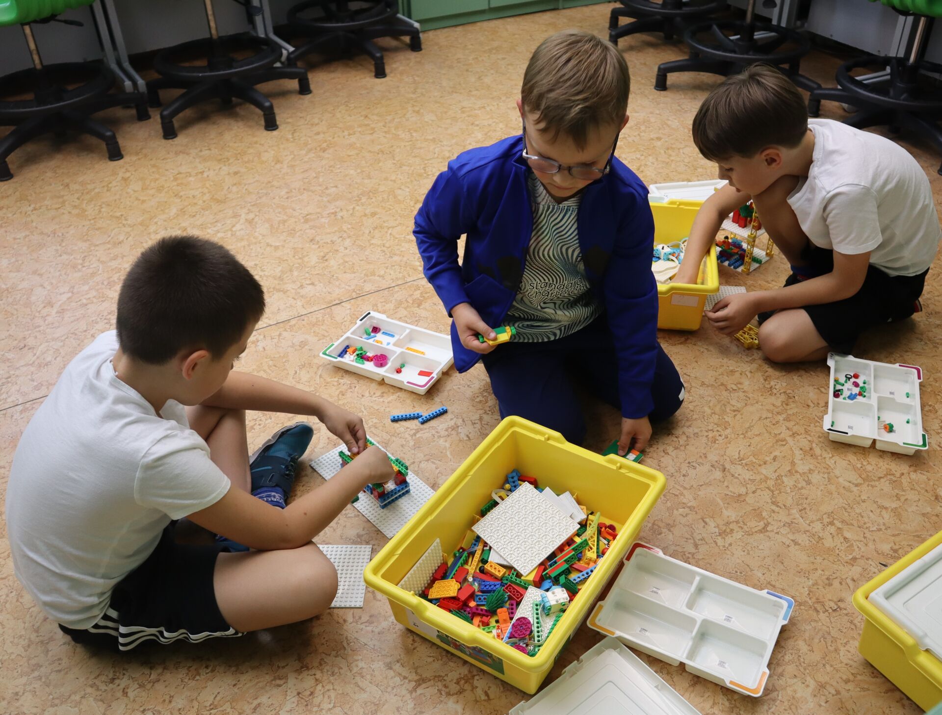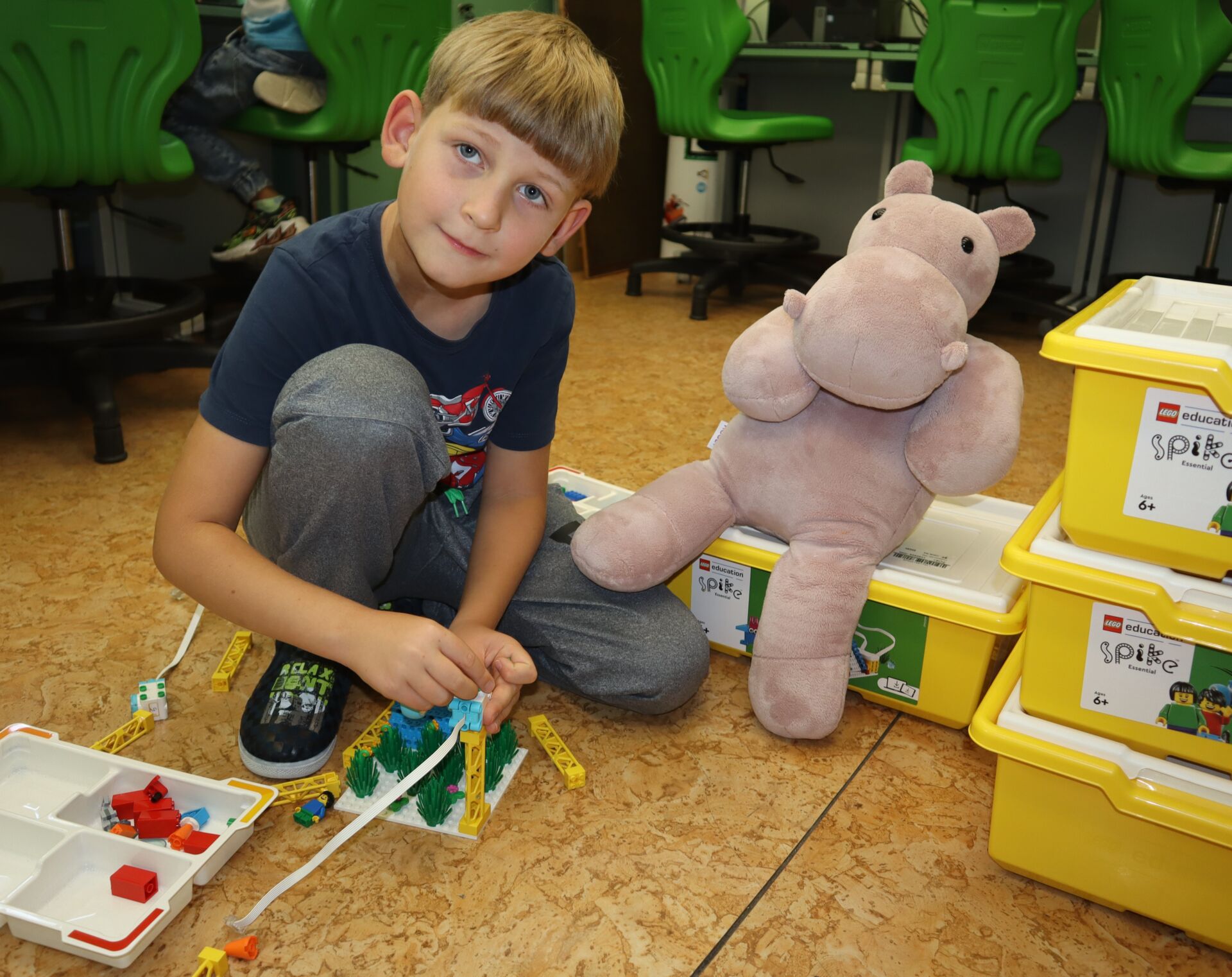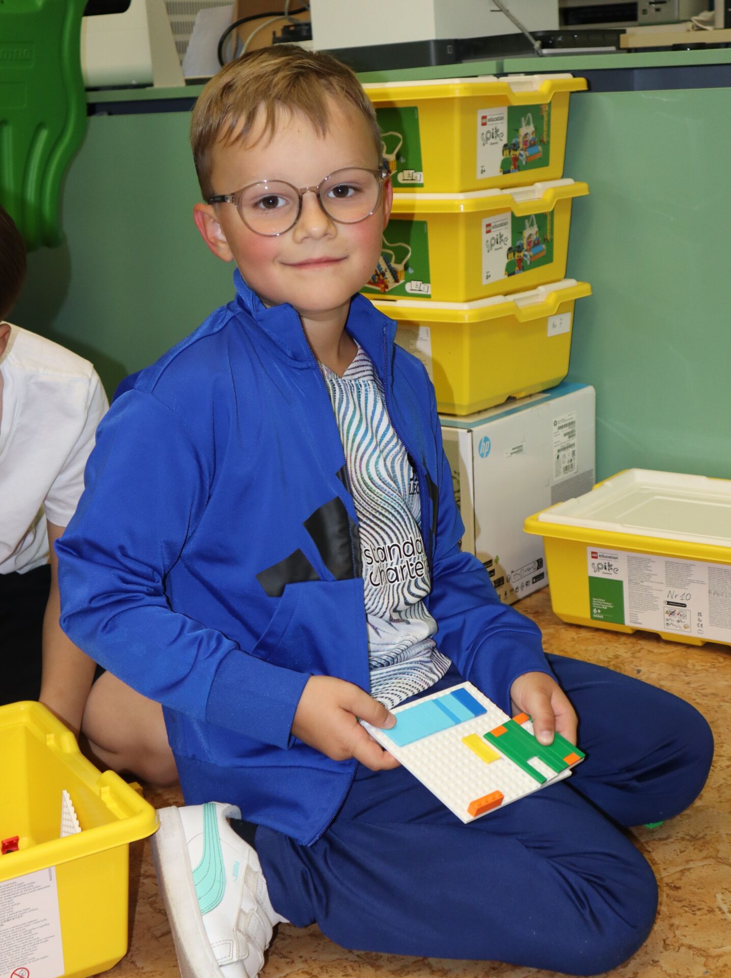 W minionym tygodniu na zajęcia koła informatycznego „Z robotyką za pan brat”, uczniowie klas: 1B, 1S, 2K, 3B i 3Z pracowali z zestawami robotów LEGO Education SPIKE Essential, wykonując własne projekty robotów z klocków Lego.