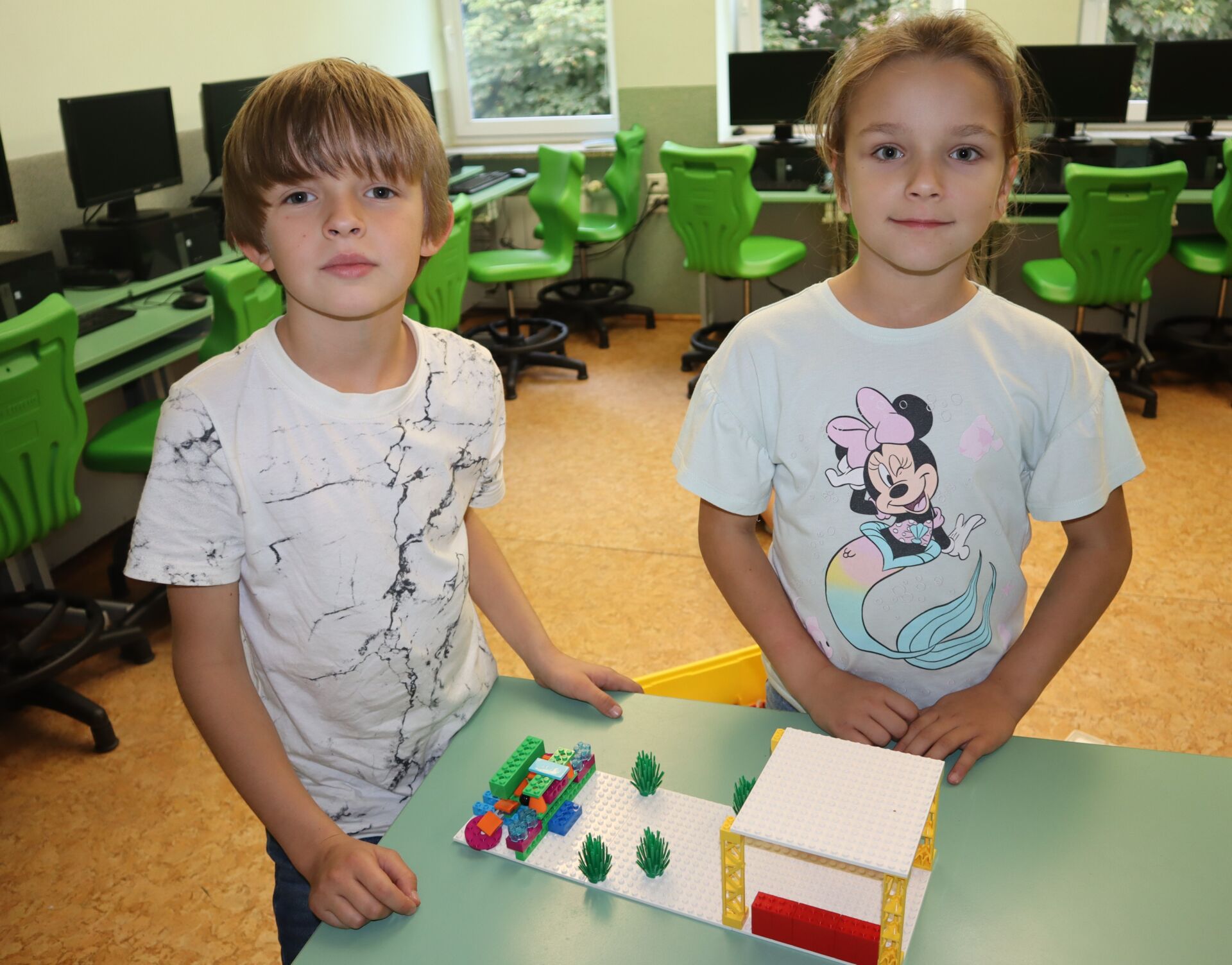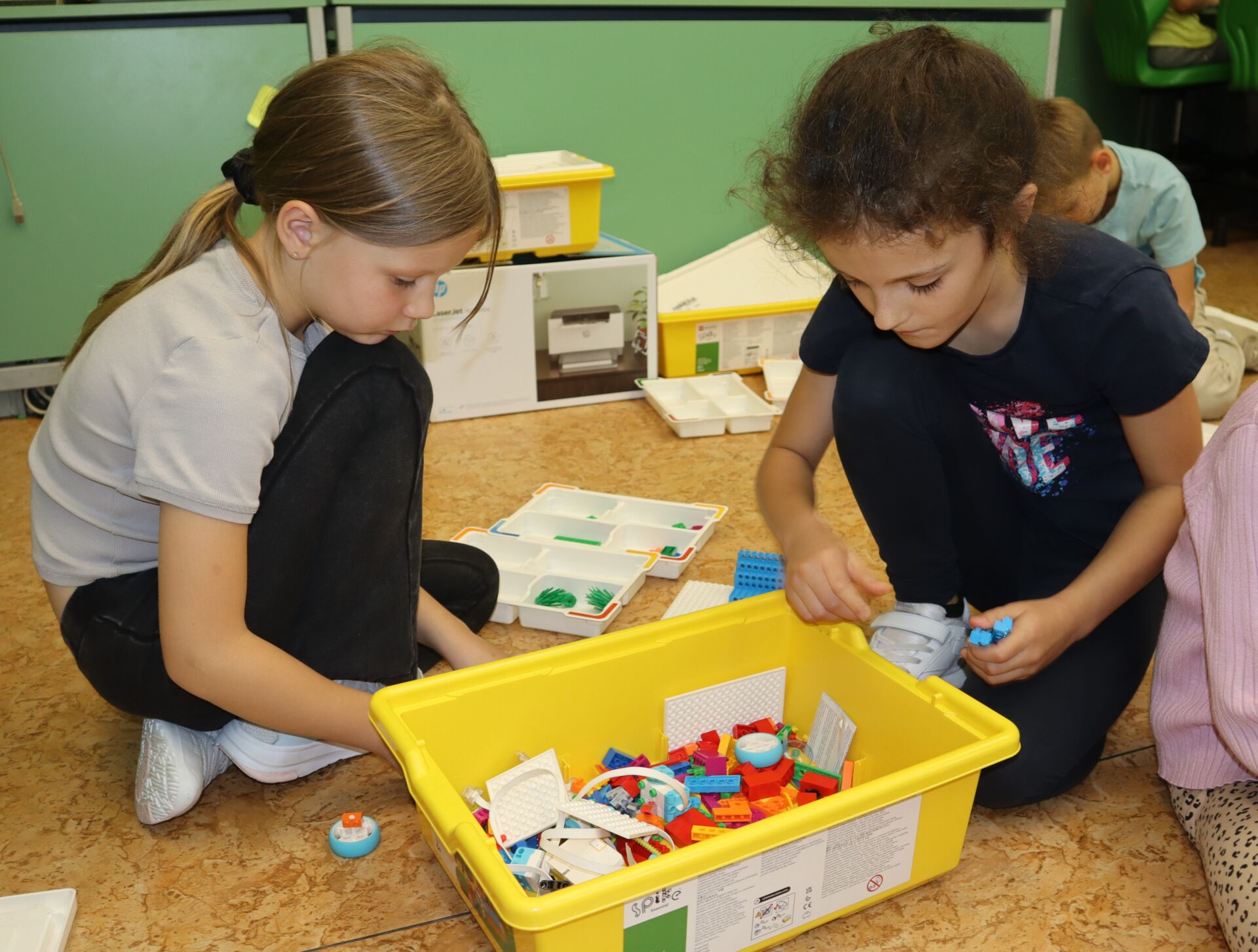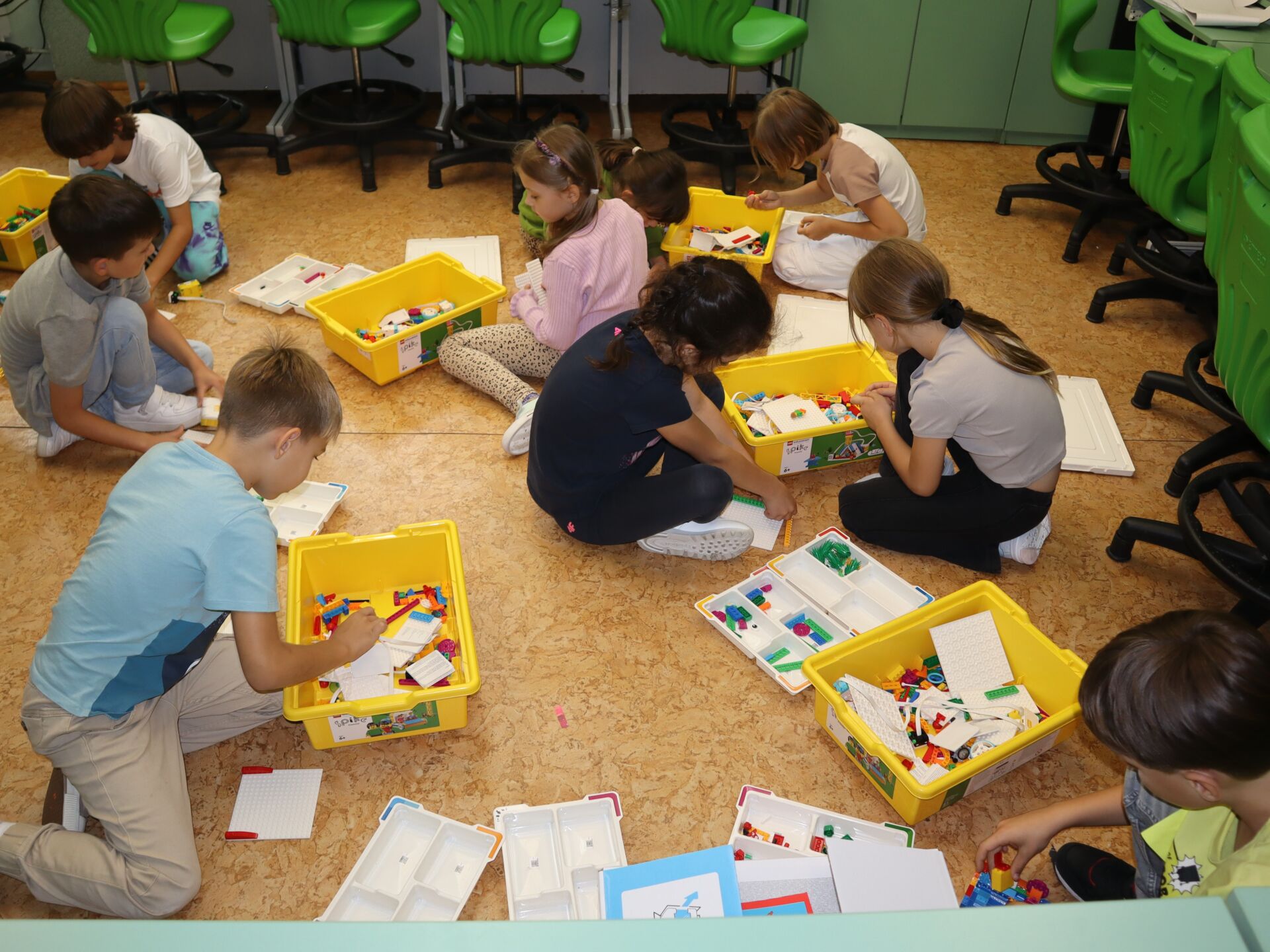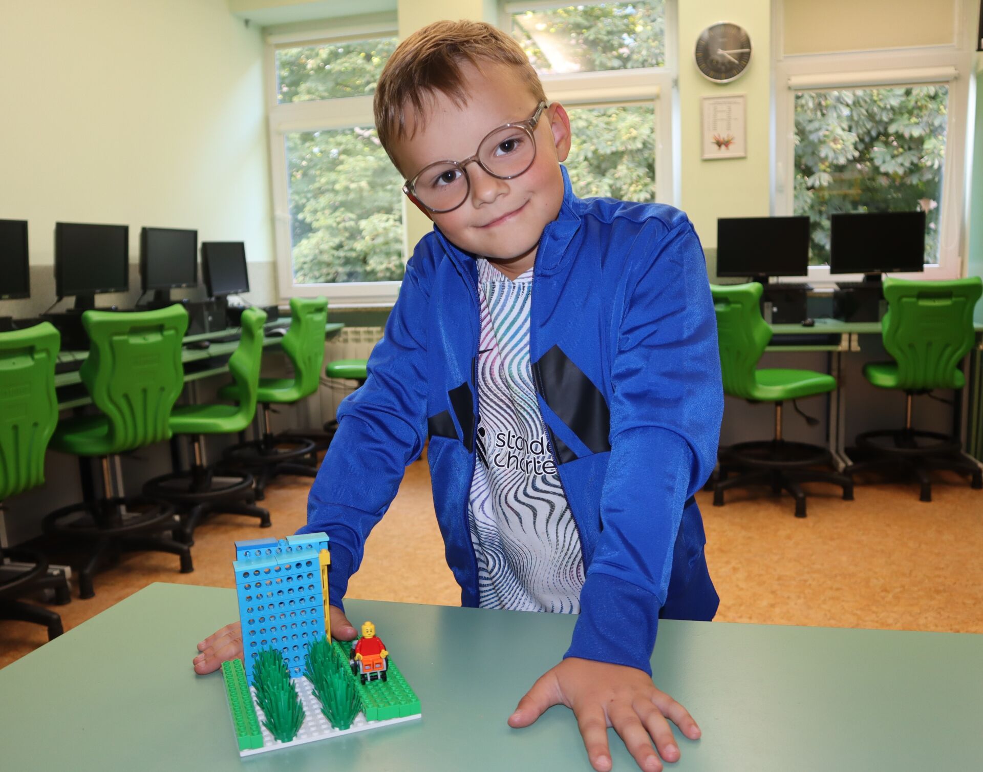 W minionym tygodniu na zajęcia koła informatycznego „Z robotyką za pan brat”, uczniowie klas: 1B, 1S, 2K, 3B i 3Z pracowali z zestawami robotów LEGO Education SPIKE Essential, wykonując własne projekty robotów z klocków Lego.