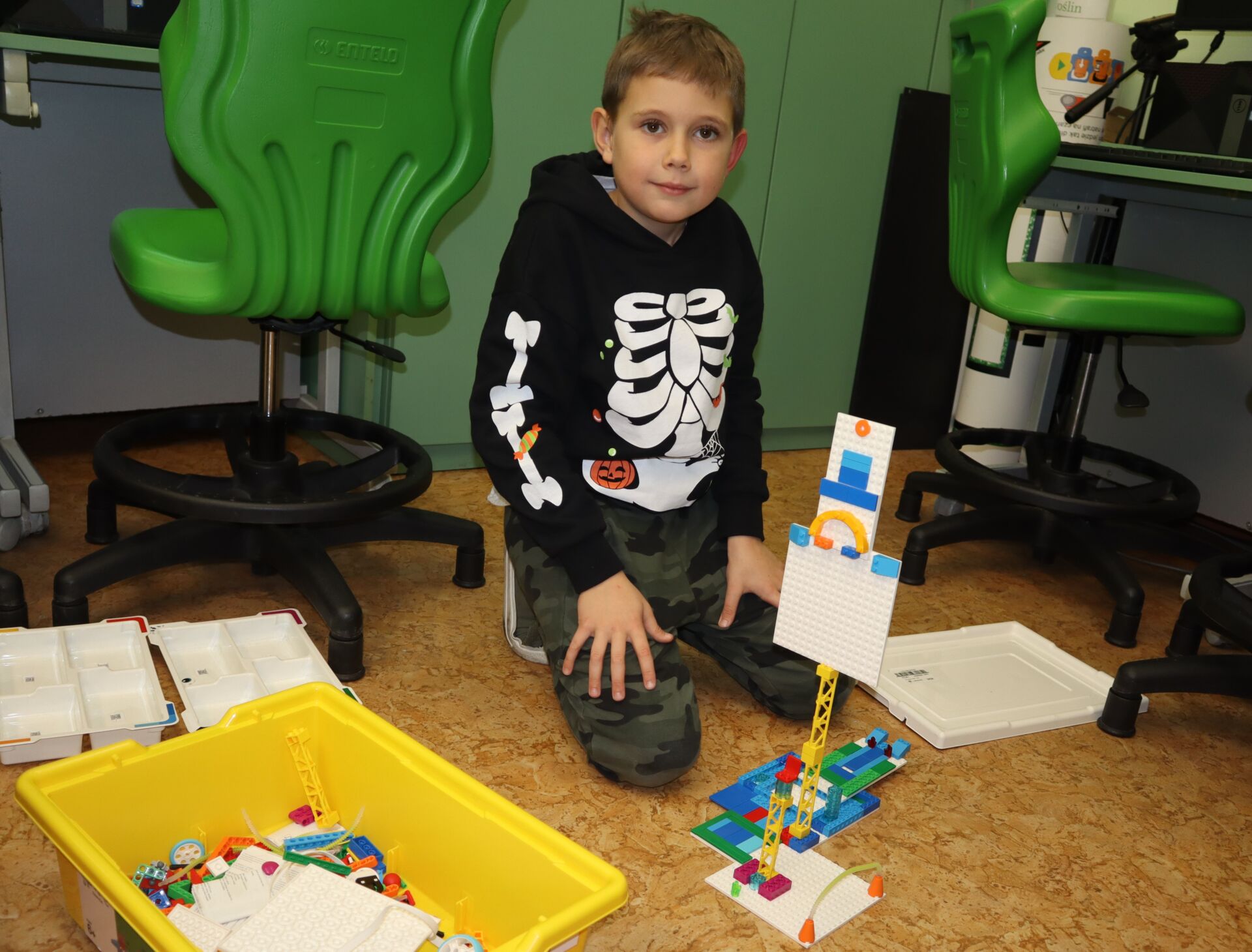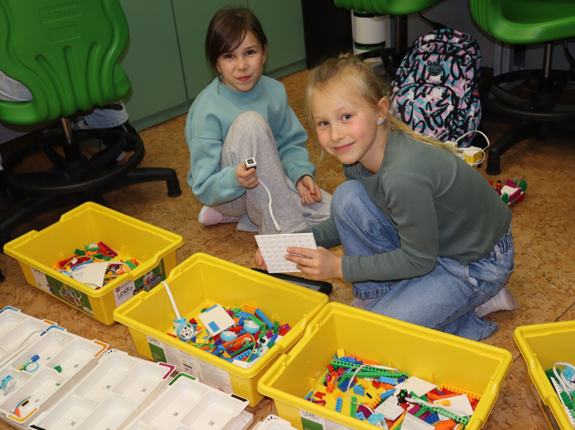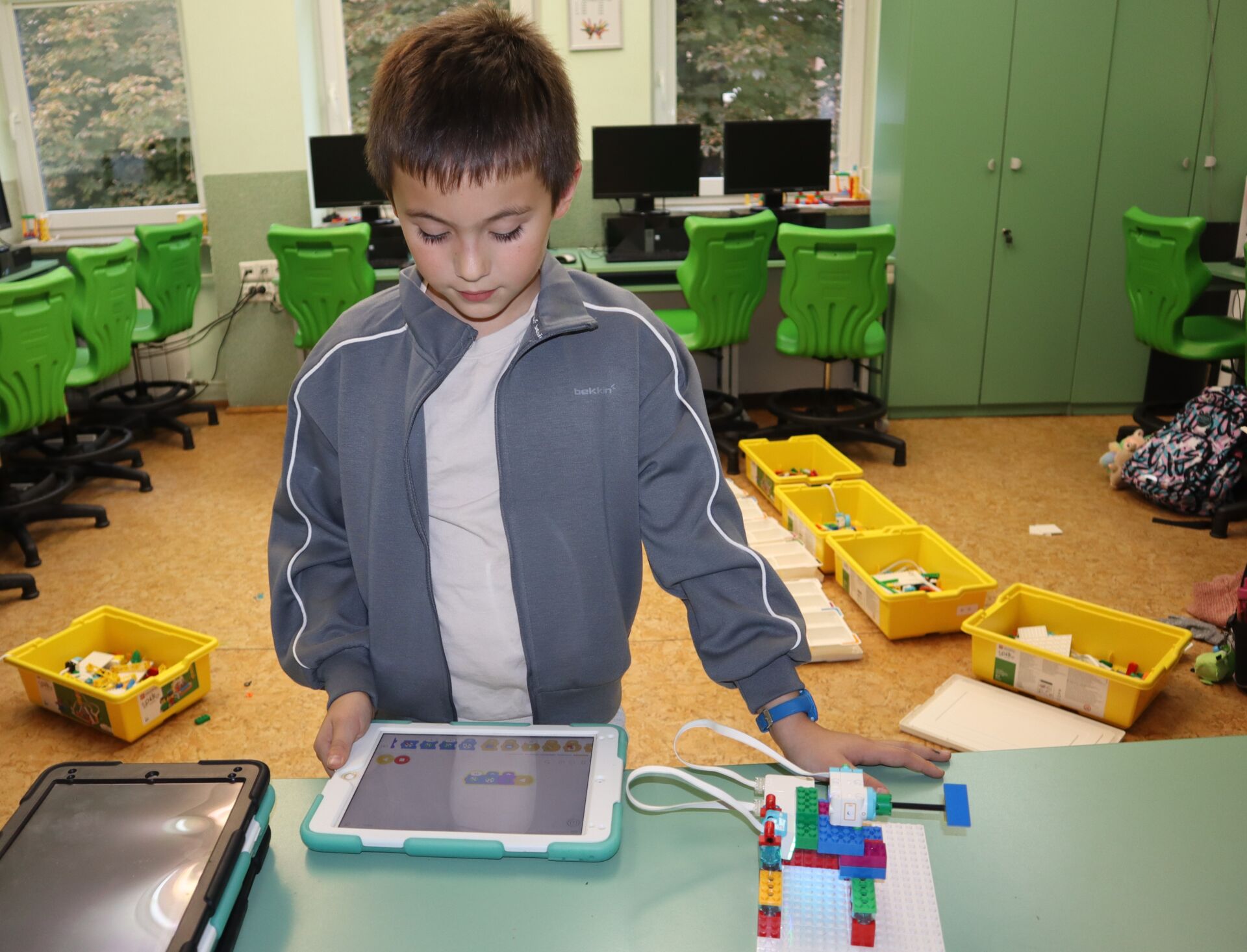 W minionym tygodniu na zajęcia koła informatycznego „Z robotyką za pan brat”, uczniowie klas: 1Z, 2B, 2S i 3K pracowali z zestawami robotów LEGO Education SPIKE Essential oraz iPad’ami skonfigurowanymi z Hubem, co umożliwia tworze w języku Scratch prostych programów do sterowana robotami wykonanymi z klocków Lego.