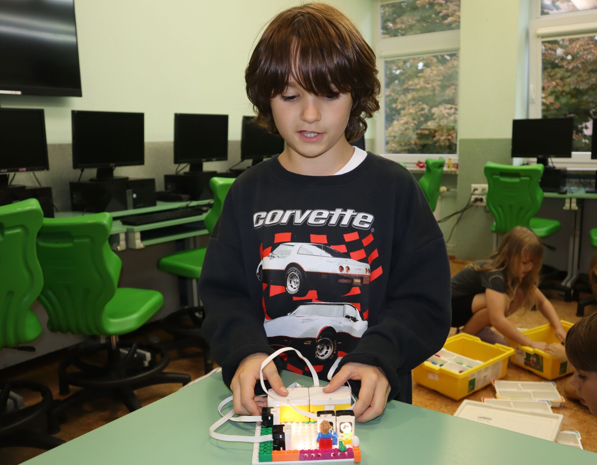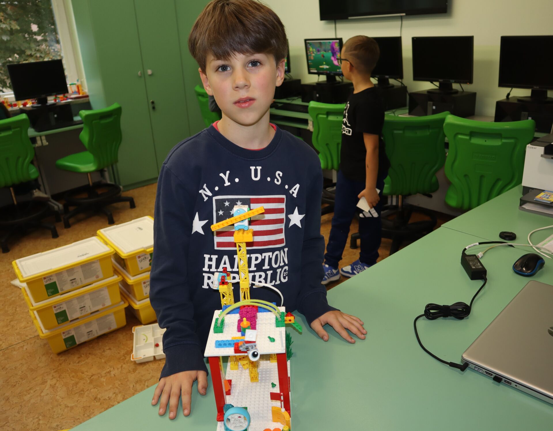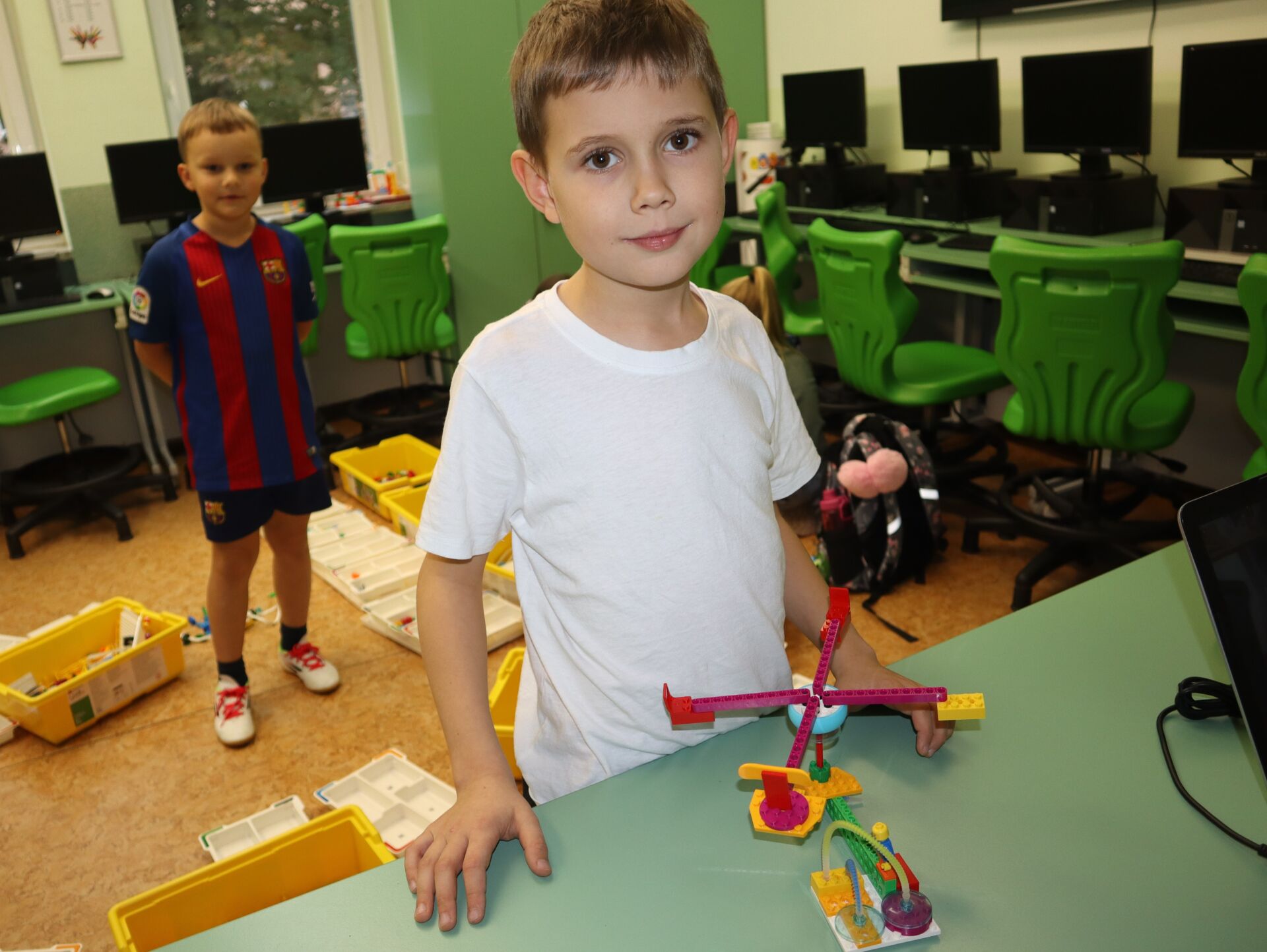W minionym tygodniu na zajęcia koła informatycznego „Z robotyką za pan brat”, uczniowie klas: 1Z, 2B, 2S i 3K pracowali z zestawami robotów LEGO Education SPIKE Essential oraz iPad’ami skonfigurowanymi z Hubem, co umożliwia tworze w języku Scratch prostych programów do sterowana robotami wykonanymi z klocków Lego.