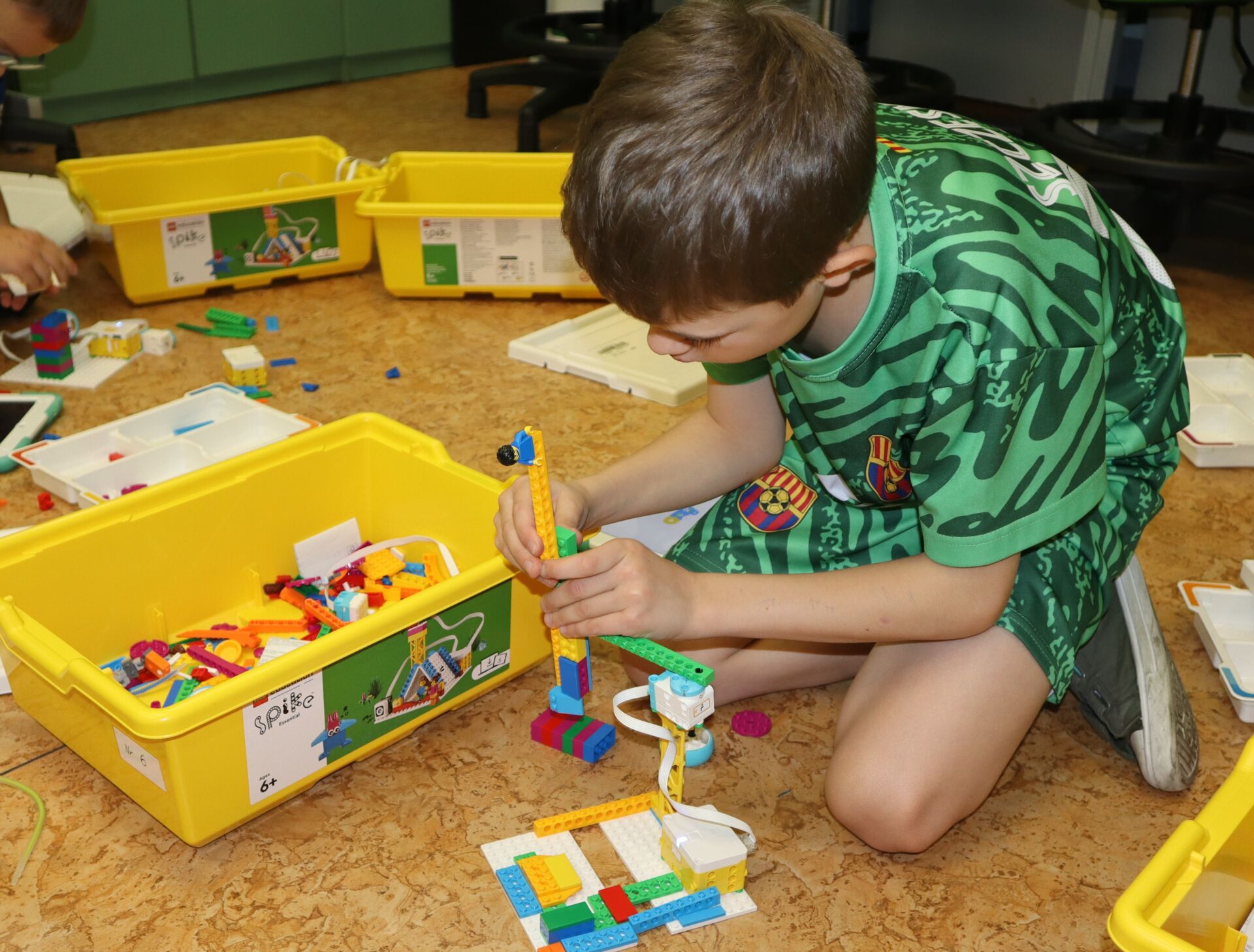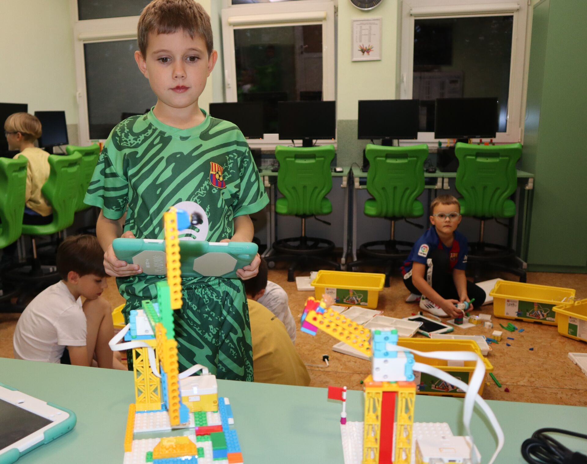W minionym tygodniu na zajęcia koła informatycznego „Z robotyką za pan brat”, uczniowie klas: 1Z, 2B, 2S i 3K pracowali z zestawami robotów LEGO Education SPIKE Essential oraz iPad’ami skonfigurowanymi z Hubem. Tworzyli w języku Scratch proste programy do sterowana robotami wykonanymi z klocków Lego.