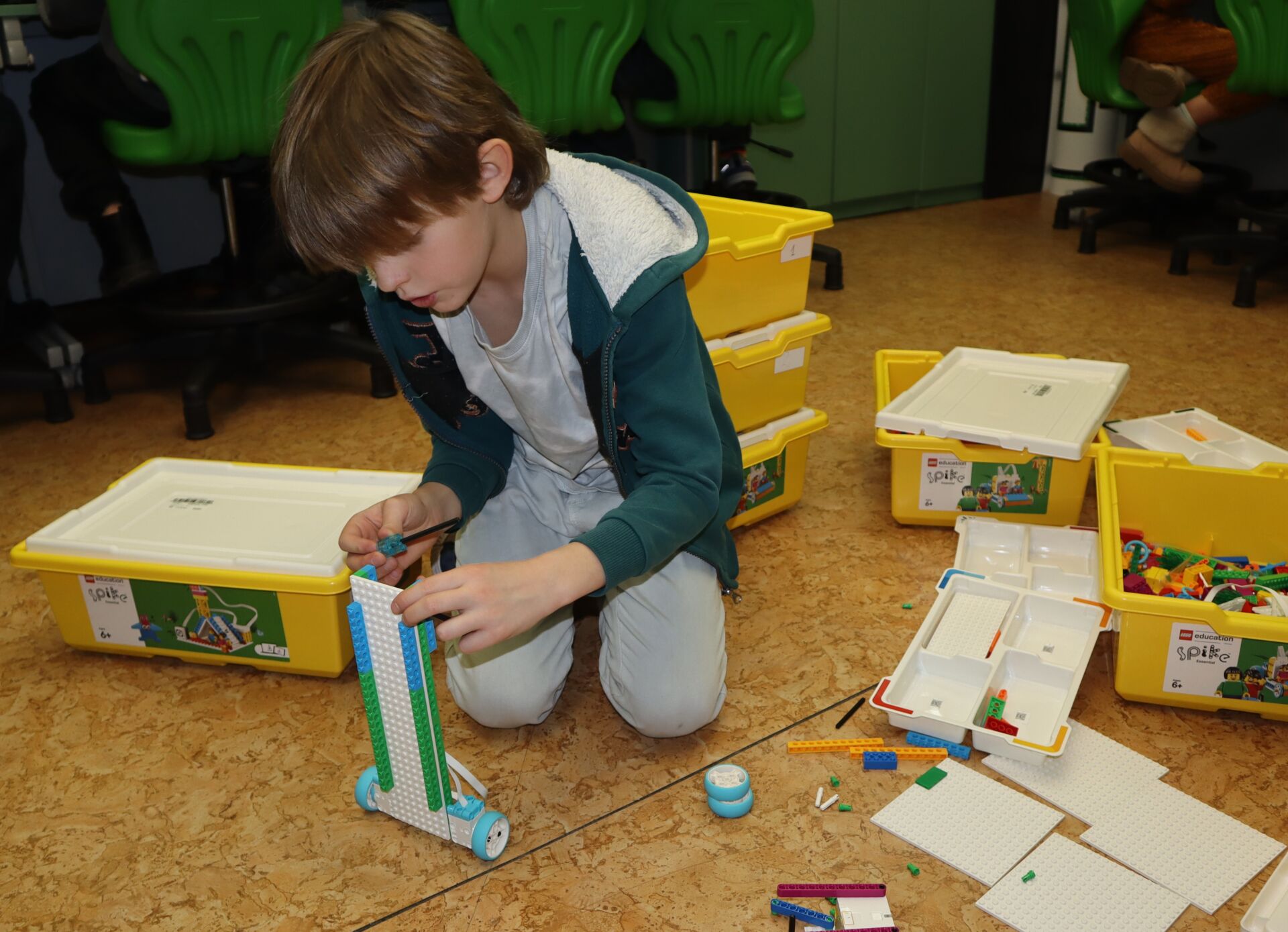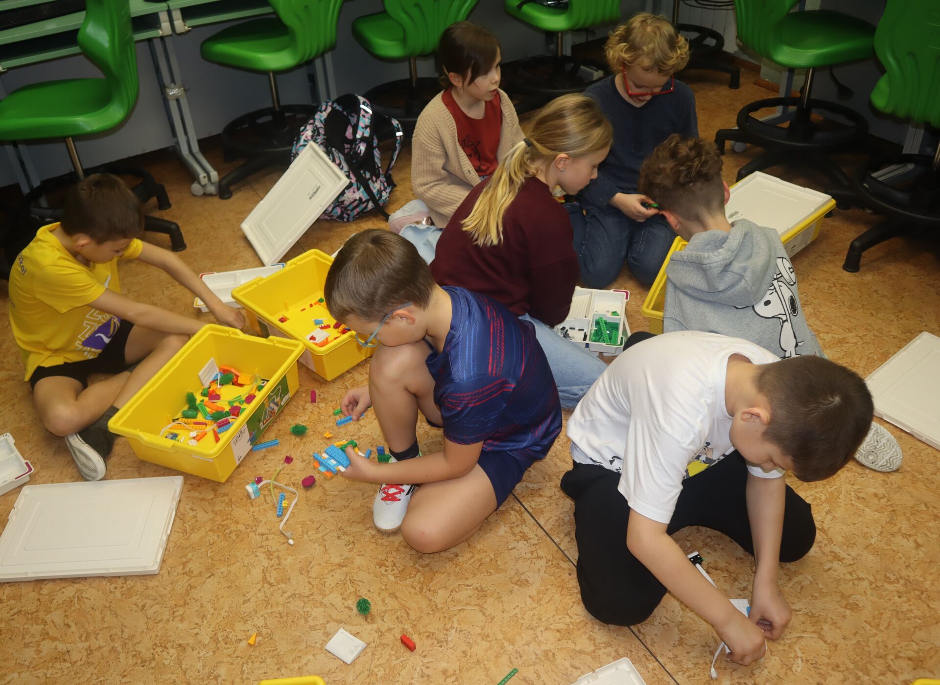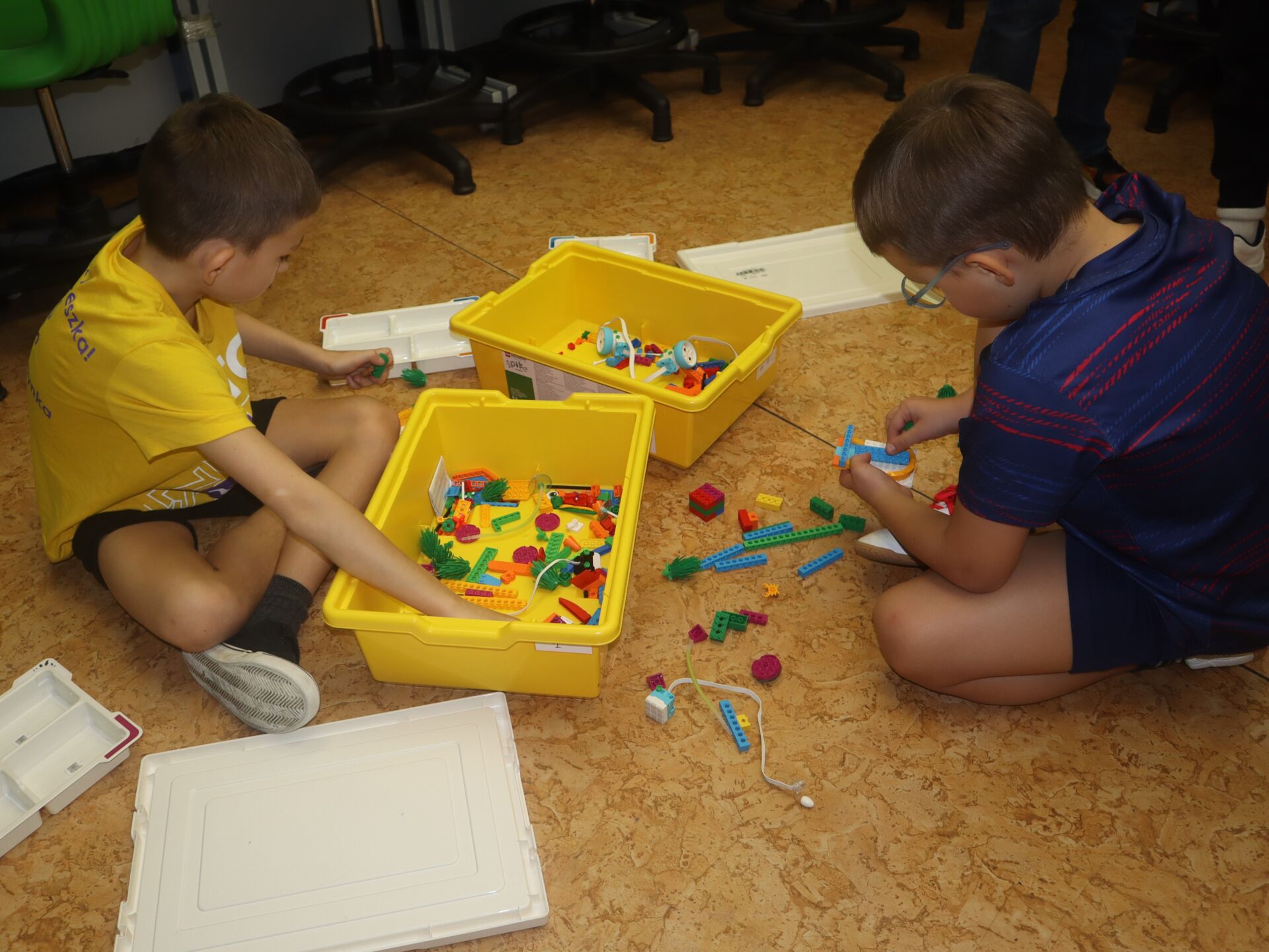 W minionym tygodniu na zajęcia koła informatycznego „Z robotyką za pan brat”, uczniowie klas: 1Z, 2B, 2S i 3K pracowali z zestawami robotów LEGO Education SPIKE Essential oraz iPad’ami skonfigurowanymi z Hubem. Tworzyli w języku Scratch proste programy do sterowana robotami wykonanymi z klocków Lego.