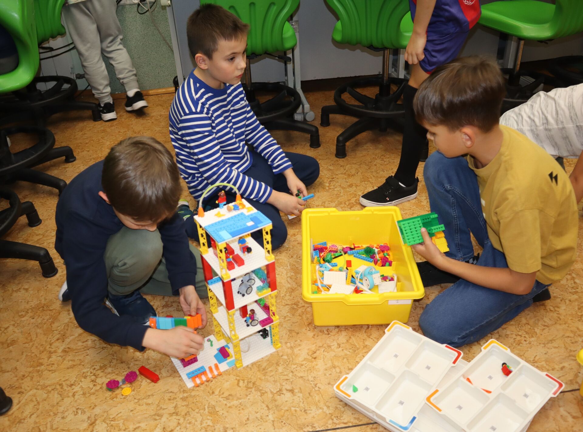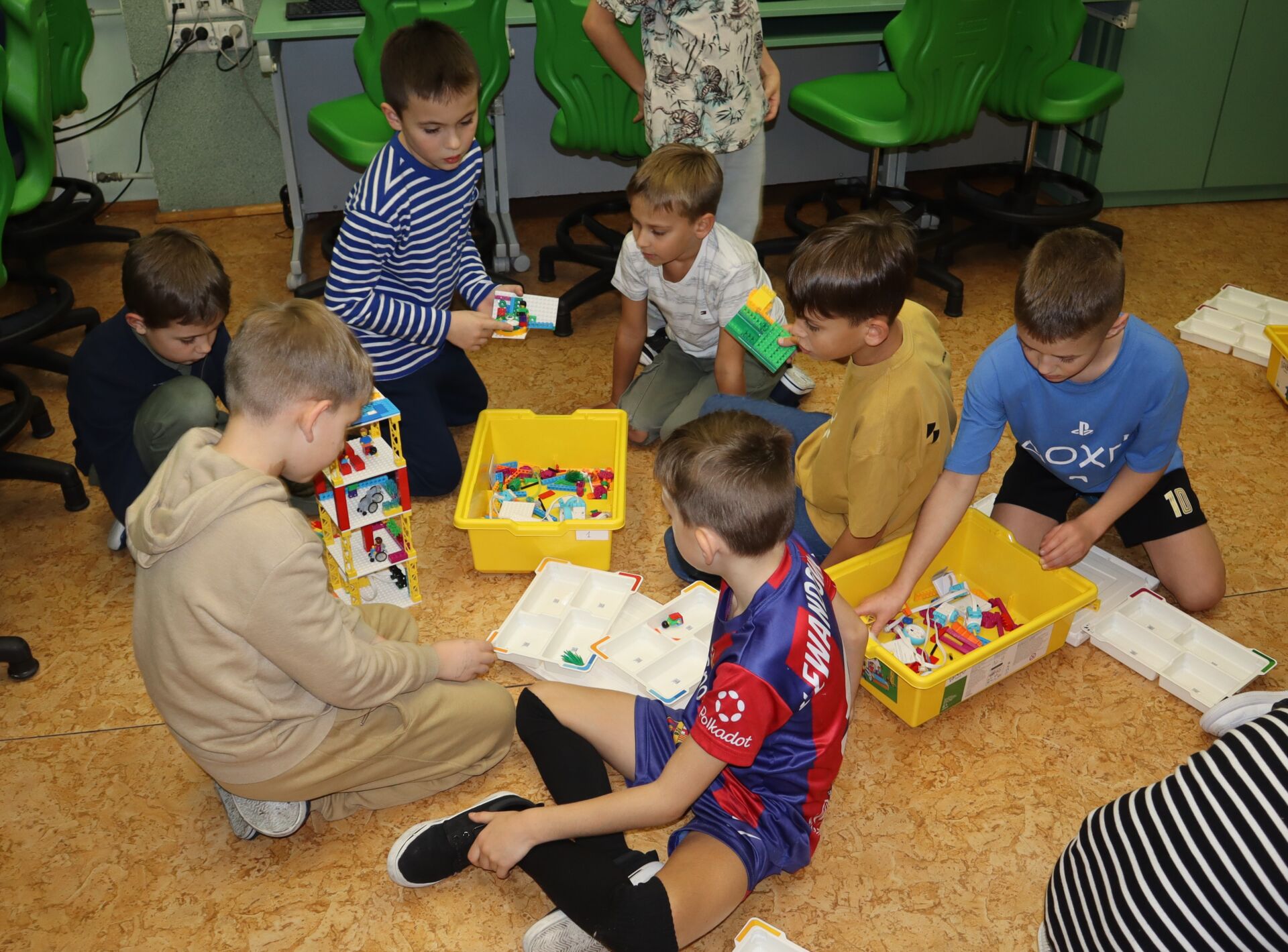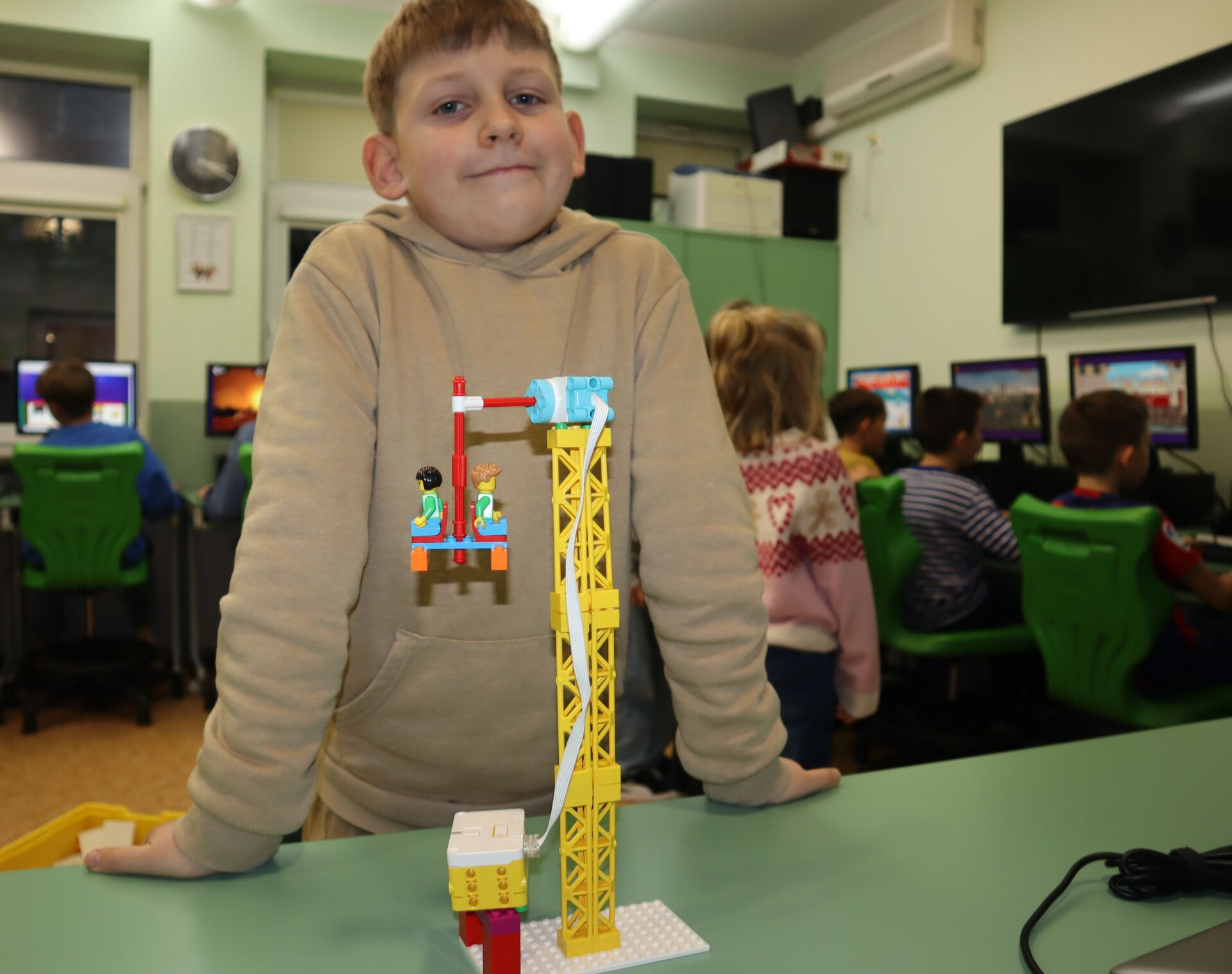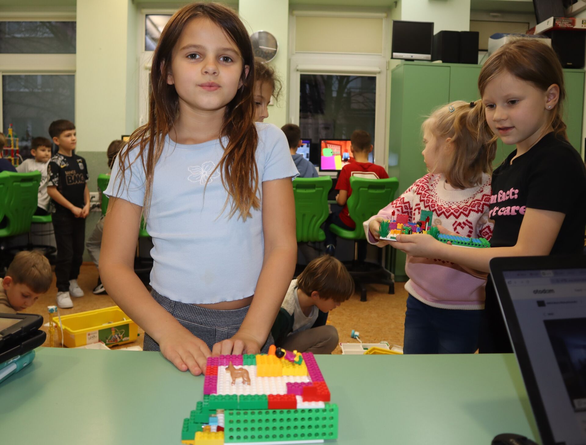 W minionym tygodniu na zajęcia koła informatycznego „Z robotyką za pan brat”, uczniowie klas: 1Z, 2B, 2S i 3K pracowali z zestawami robotów LEGO Education SPIKE Essential oraz iPad’ami skonfigurowanymi z Hubem. Tworzyli w języku Scratch proste programy do sterowana robotami wykonanymi z klocków Lego.