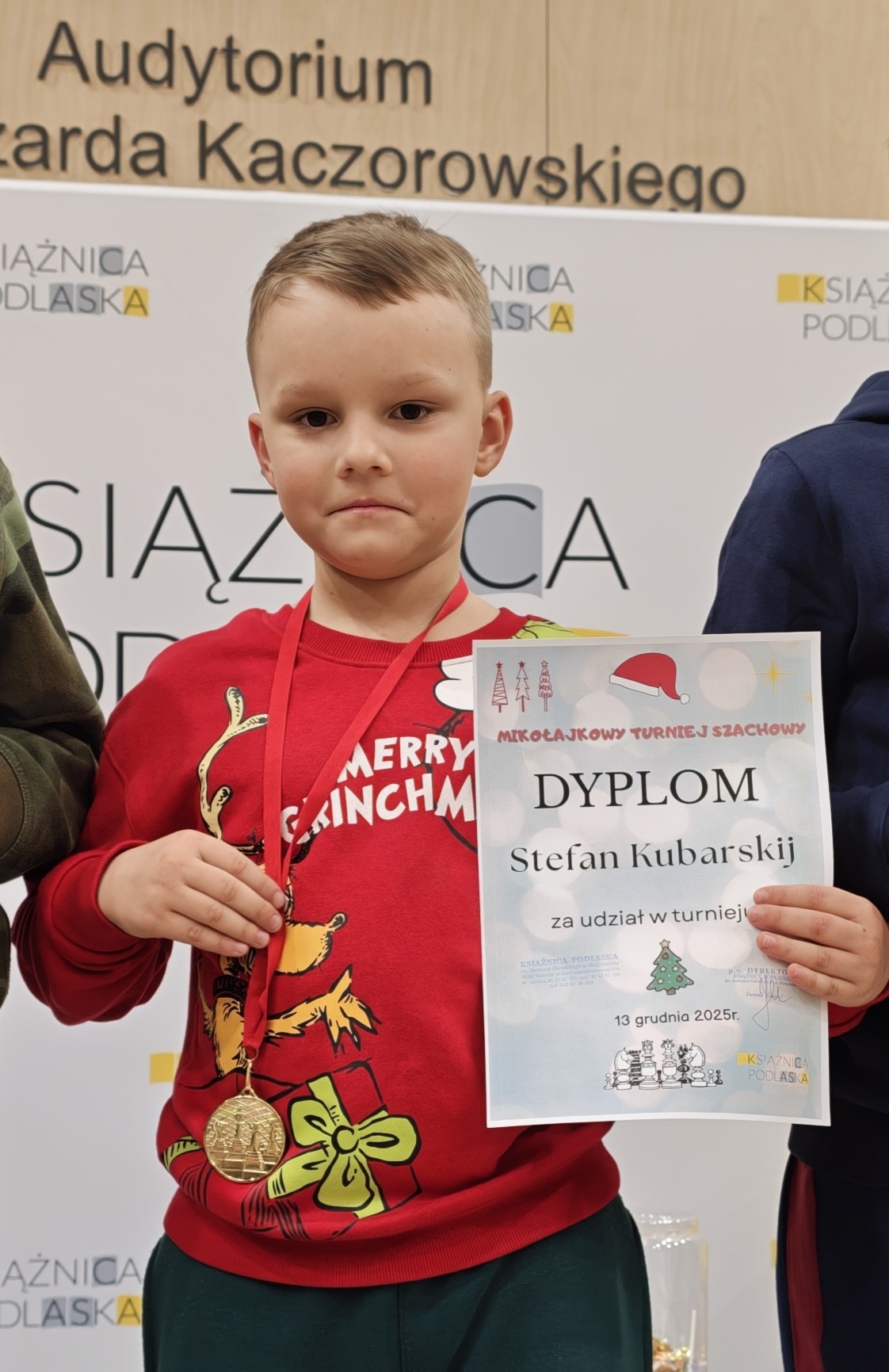 13 grudnia podczas mikołajkowego turnieju szachowego w Książnicy Podlaskiej naszą szkołę godnie reprezentował Stefan z klasy 2S.