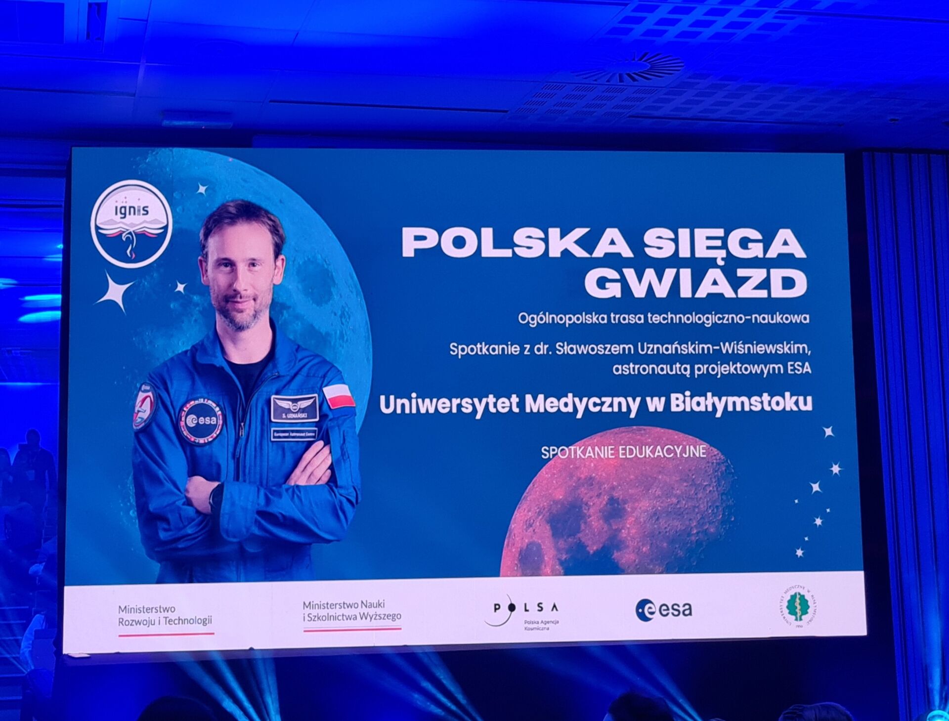 Podczas spotkania na Uniwersytecie Medycznym w Białymstoku astronauta dzielił się swoją wiedzą i pasją. Dr Sławosz Uznański-Wiśniewski opowiadał m.in. o warunkach życia na Międzynarodowej Stacji Kosmicznej oraz o swoich wrażeniach z całej, 20-dniowej wyprawy.