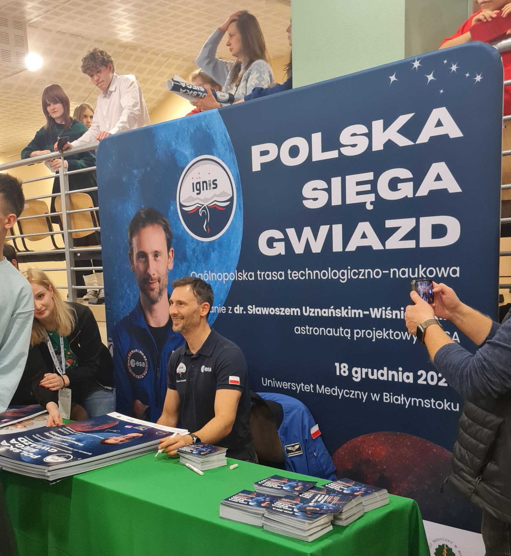 W czwartek, 18 grudnia 2025 r., nasi uczniowie uczestniczyli w wyjątkowym wydarzeniu z udziałem polskiego astronauty, dr. Sławosza Uznańskiego-Wiśniewskiego.