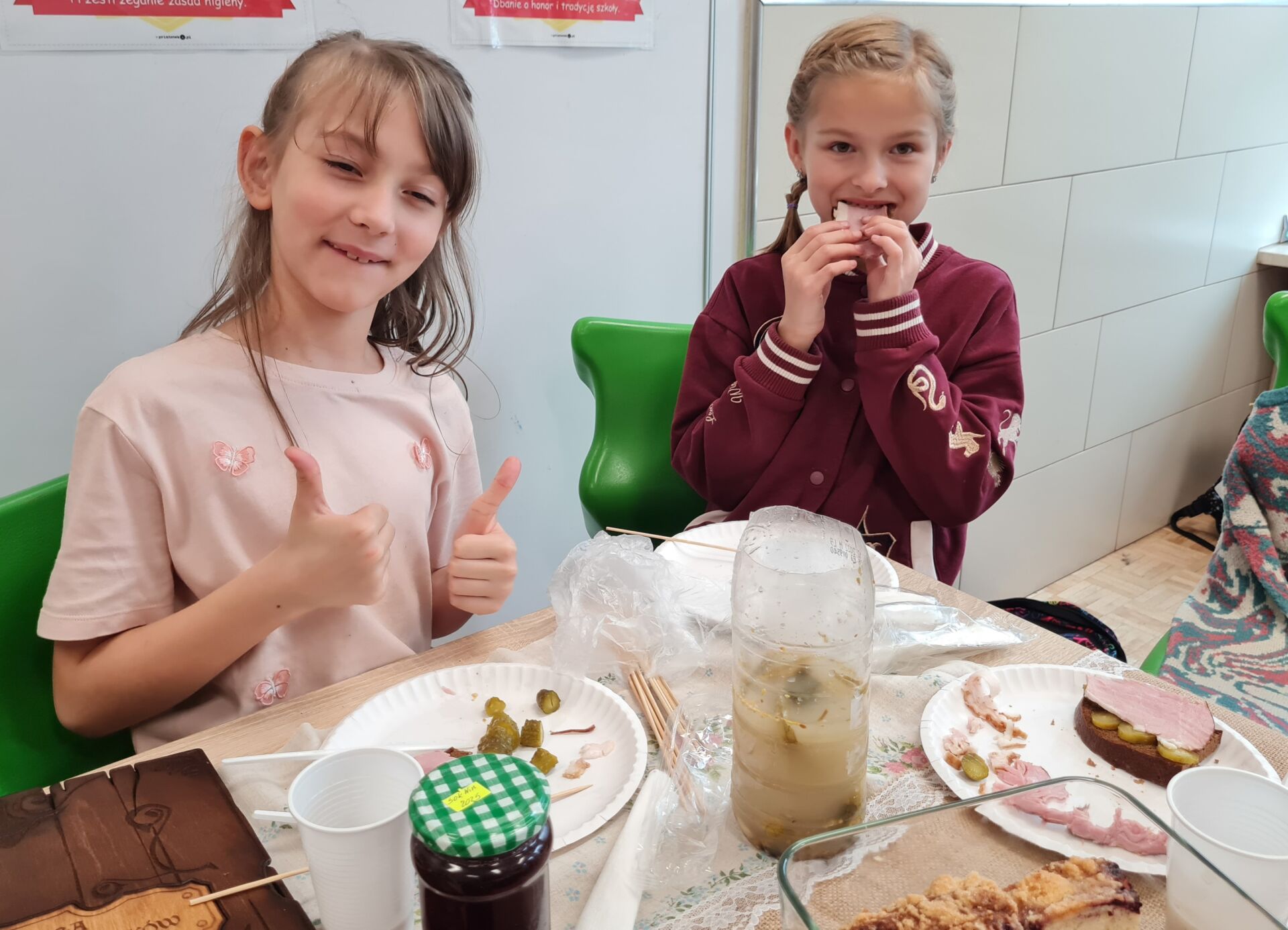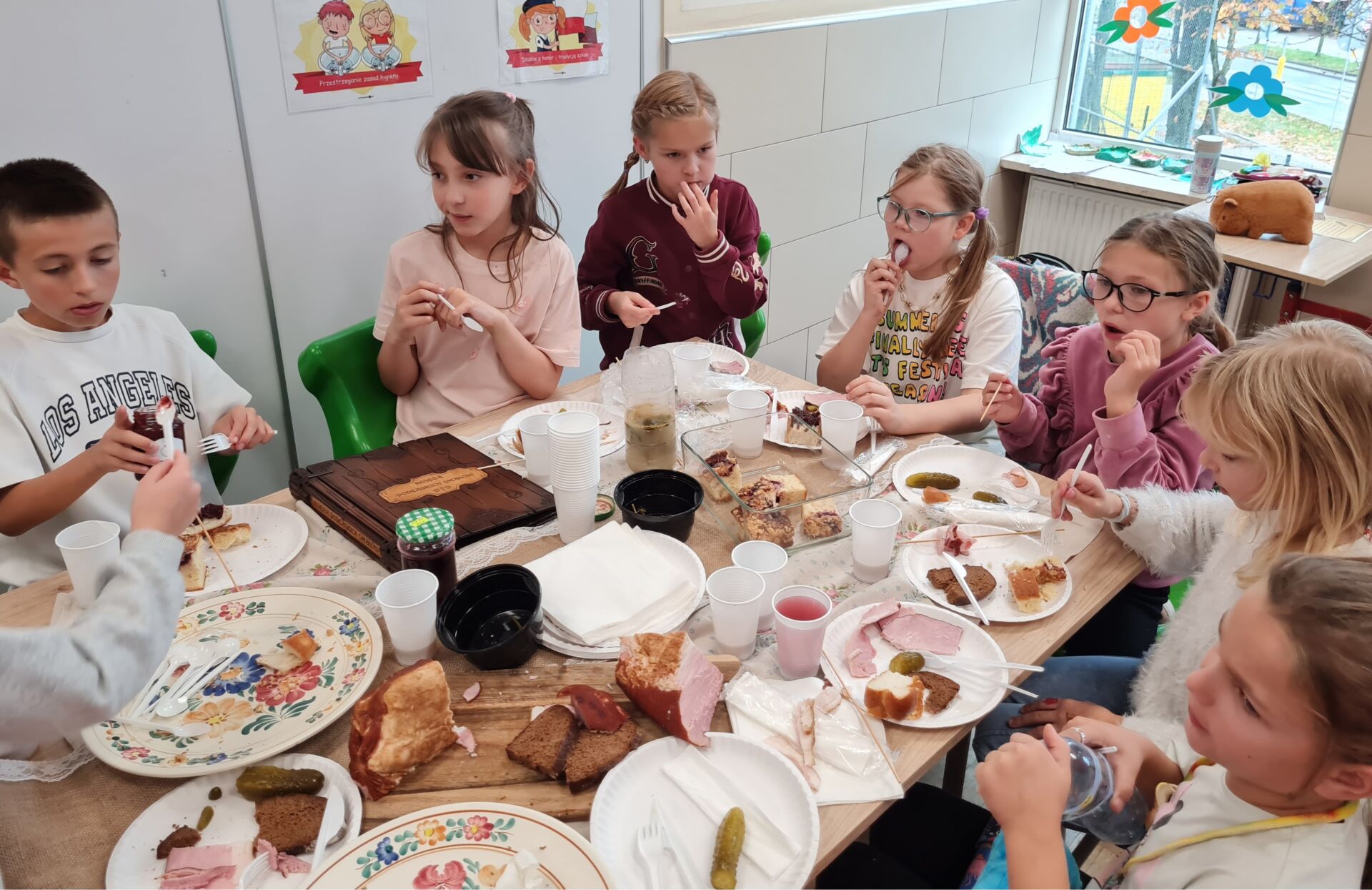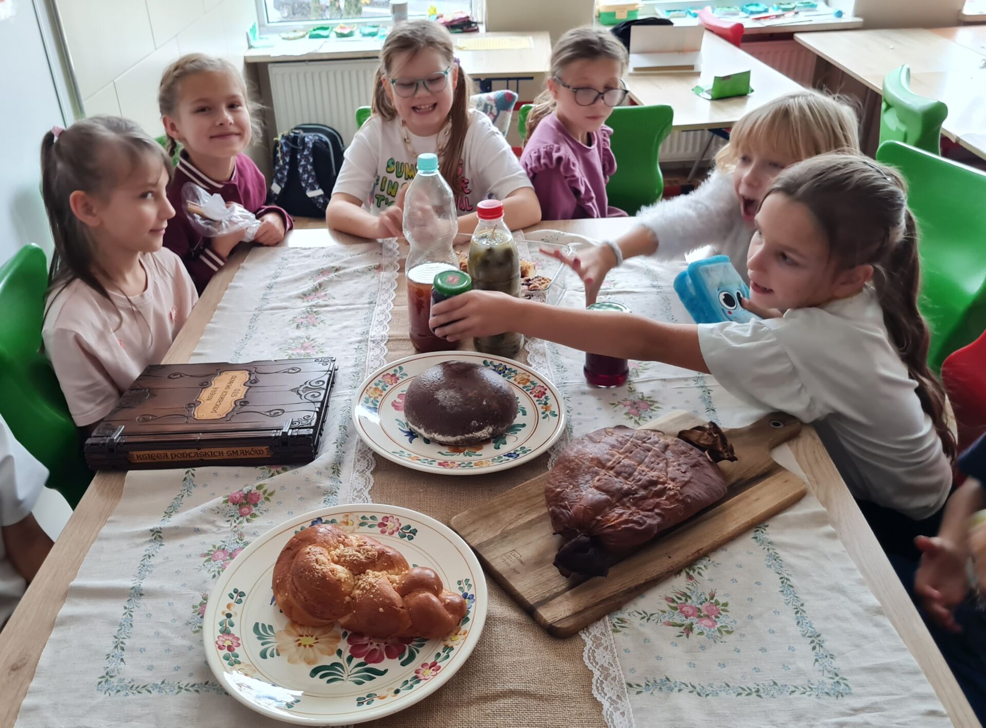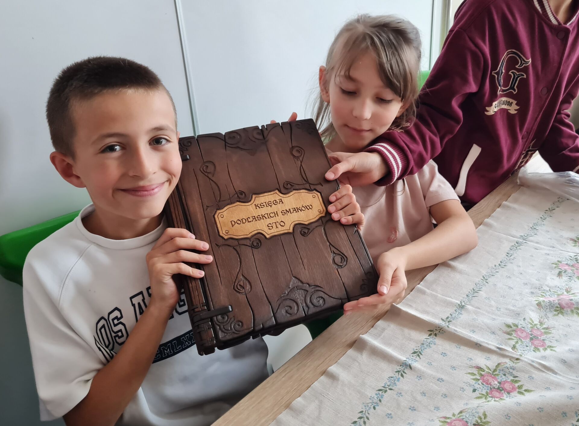 Głównym celem zajęć było stworzenie wspólnej, unikatowej Księgi  Podlaskich Przepisów STO, wypełnionej kulinarnymi skarbami prosto z rodzinnych domów uczniów. Dzieci z zaangażowaniem przygotowały pięknie zdobione kartki, na których spisały ulubione przepisy przekazywane z pokolenia na pokolenie. Kulminacyjnym punktem warsztatów była degustacja! Na stole zagościły dania słodkie i wytrawne, prezentujące bogactwo smaków Podlasia. W trakcie degustacji dzieci spróbowały m.in. tradycyjnego podpiwku, konfitury, drożdżówki, a także ogórków kiszonych. Ta różnorodność stanowiła wspaniałą reprezentację podlaskiego stołu.
