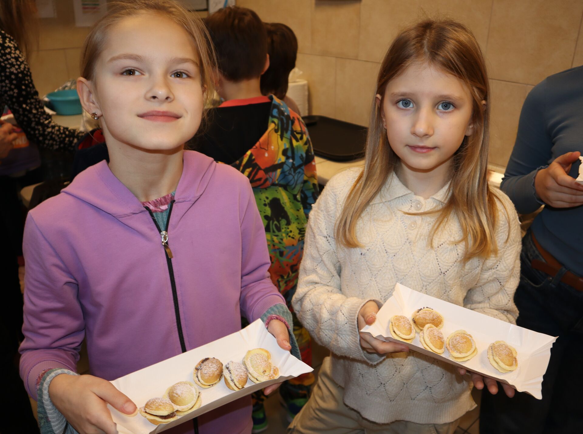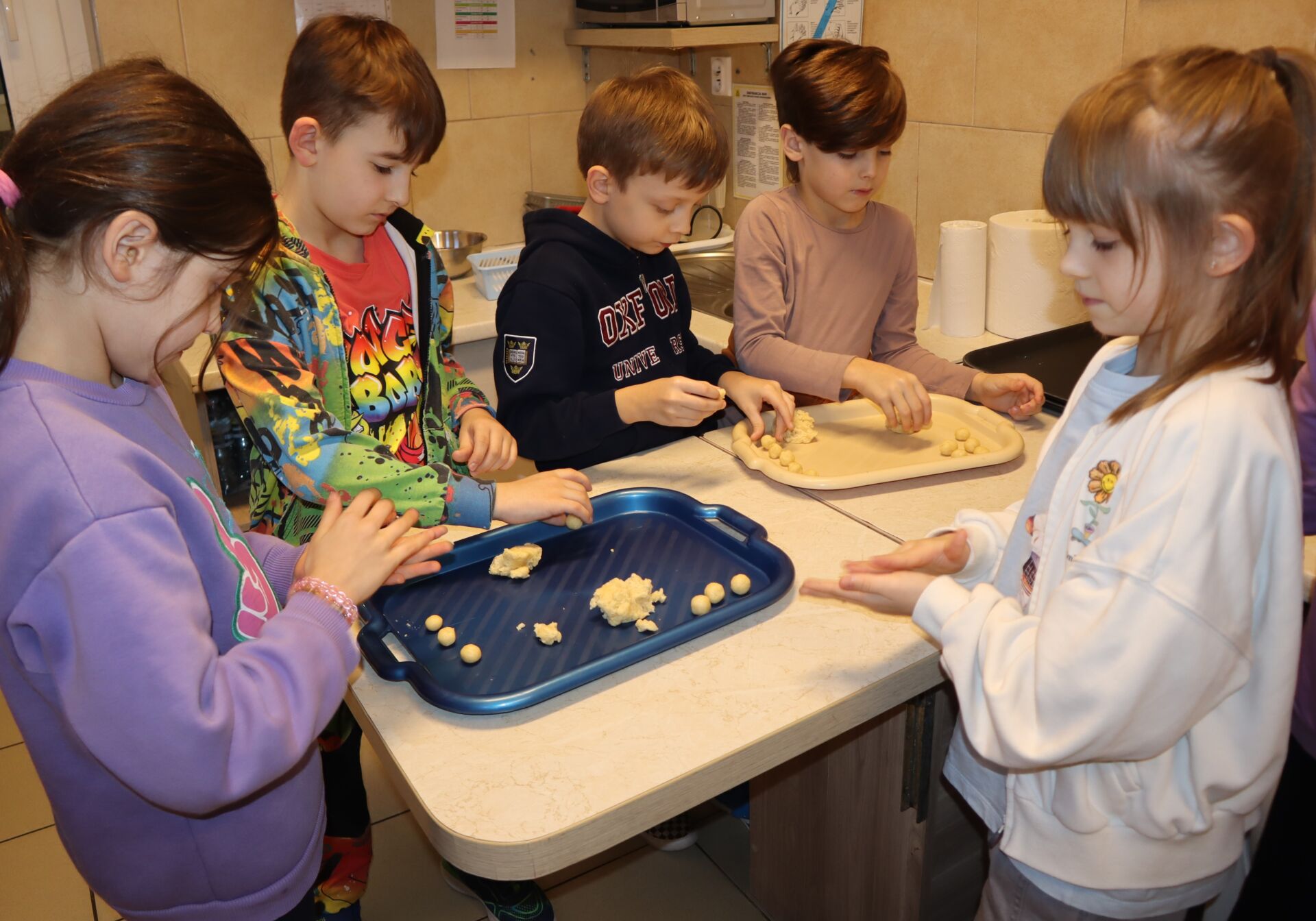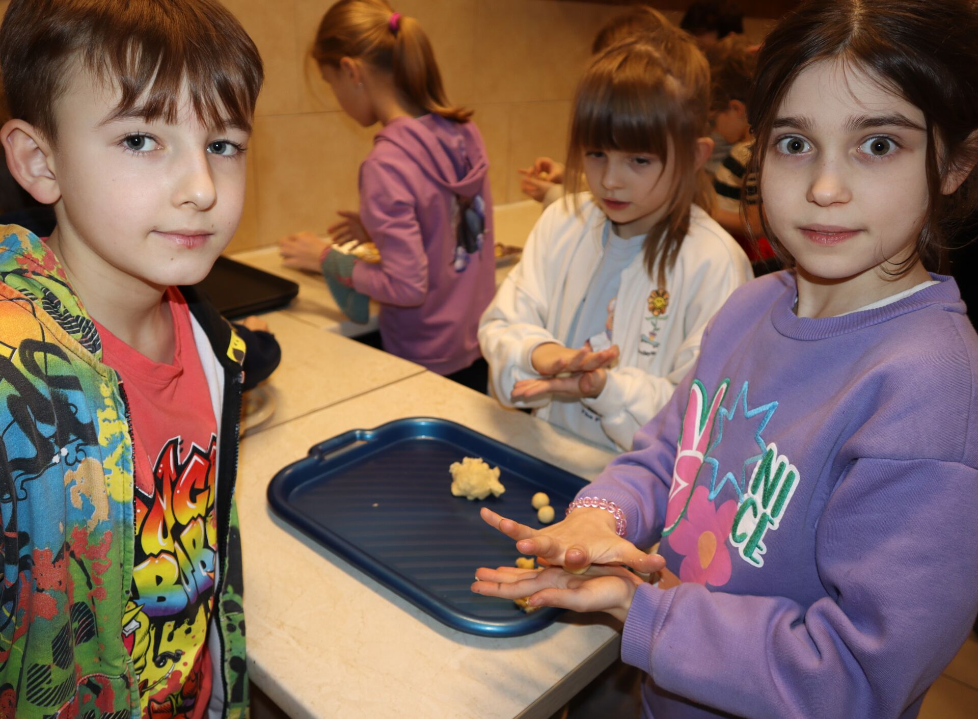 Dzieci z ogromnym zaangażowaniem formowały idealnie równe, małe kuleczki ciasta, które po upieczeniu w specjalnej maszynce, wypełniały aksamitnym nadzieniem.