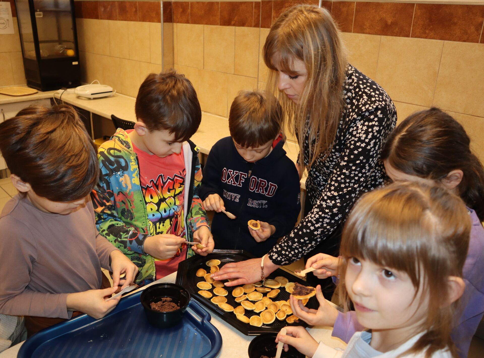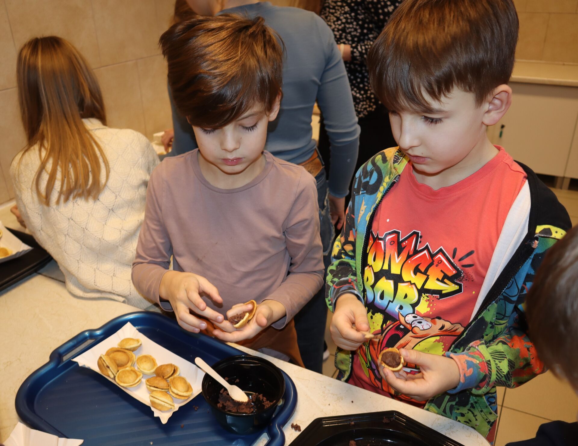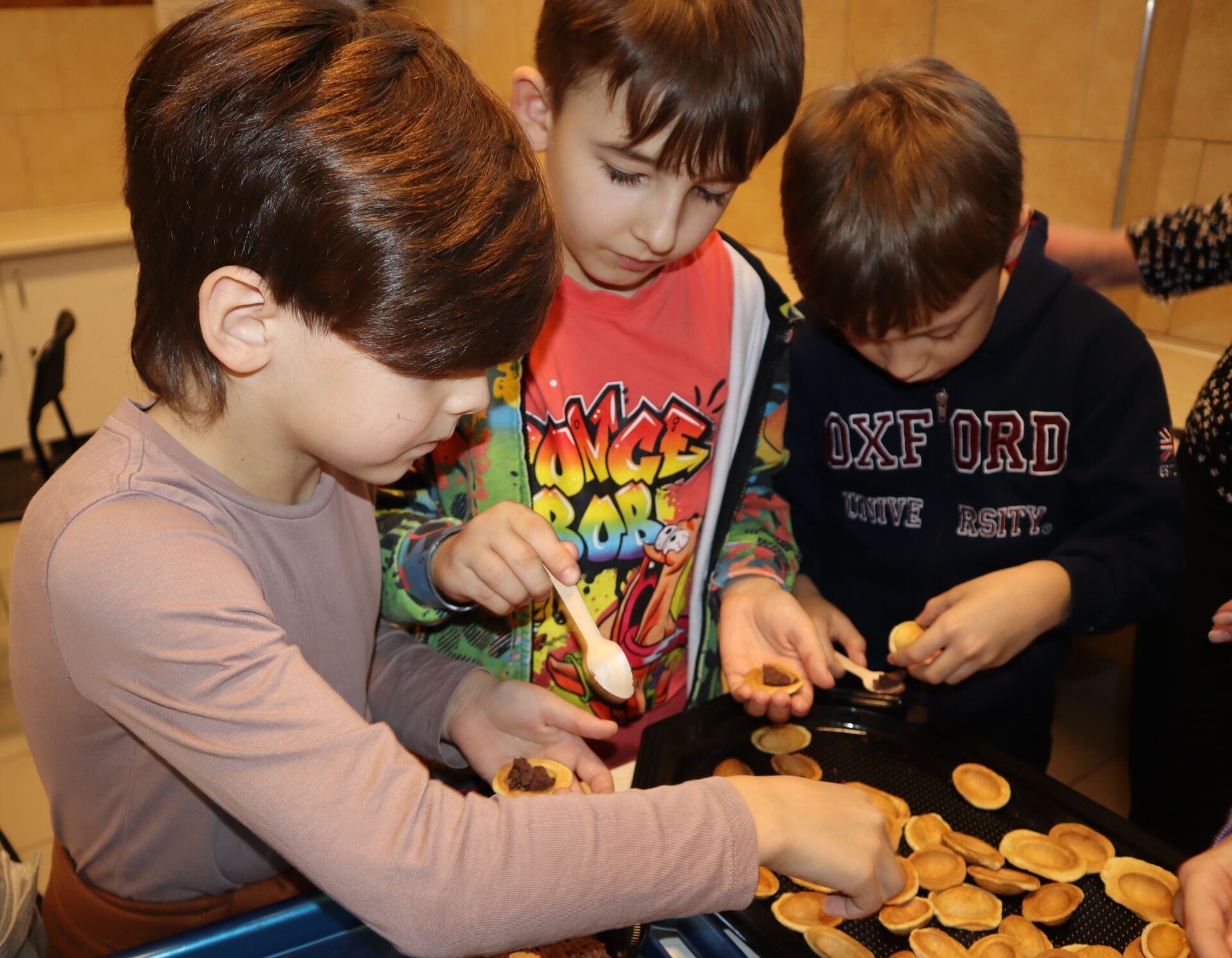 Dzieci z ogromnym zaangażowaniem formowały idealnie równe, małe kuleczki ciasta, które po upieczeniu w specjalnej maszynce, wypełniały aksamitnym nadzieniem.