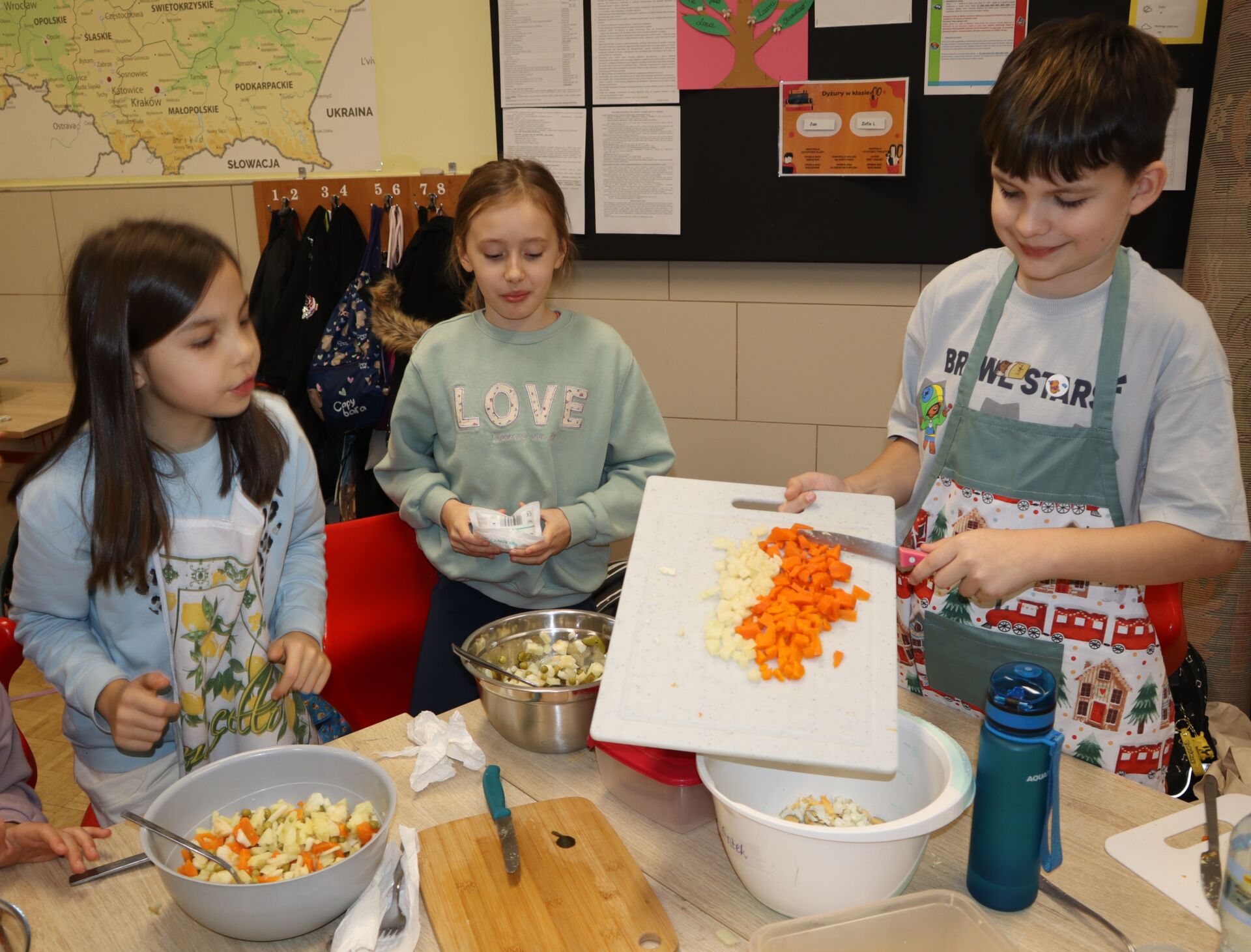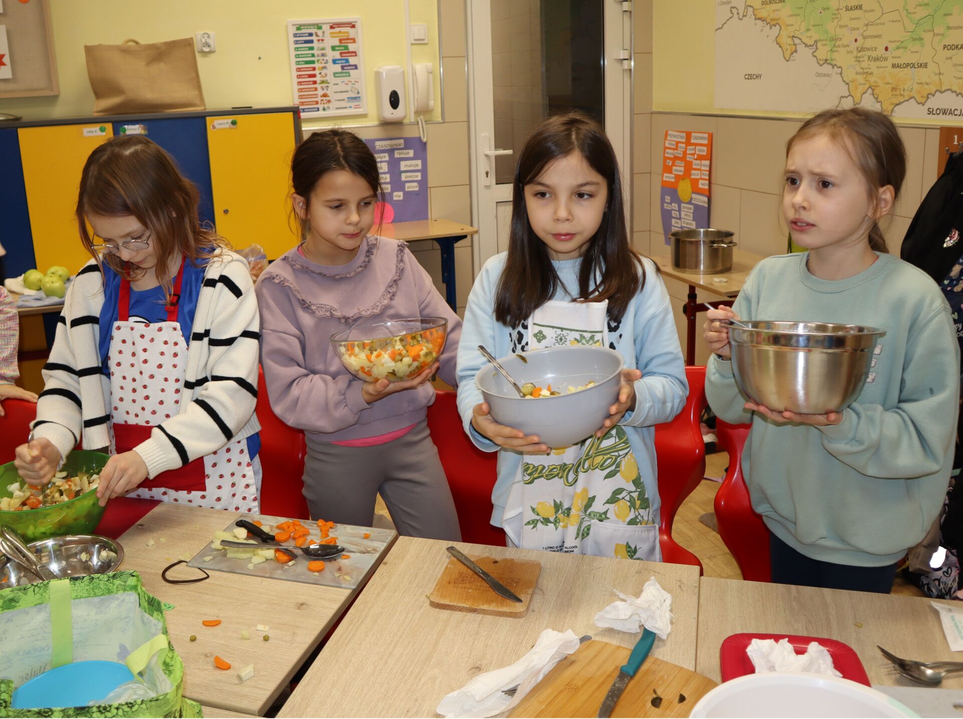 W ramach projektu “Śladami Wielokulturowego Podlasia” odbyły się kolejne warsztaty “Smaki Podlasia”. Uczniowie z klasy 2S wykonali tradycyjną sałatkę jarzynową. Przygotowanie jej było doskonałą okazją do praktycznej nauki o lokalnych produktach.