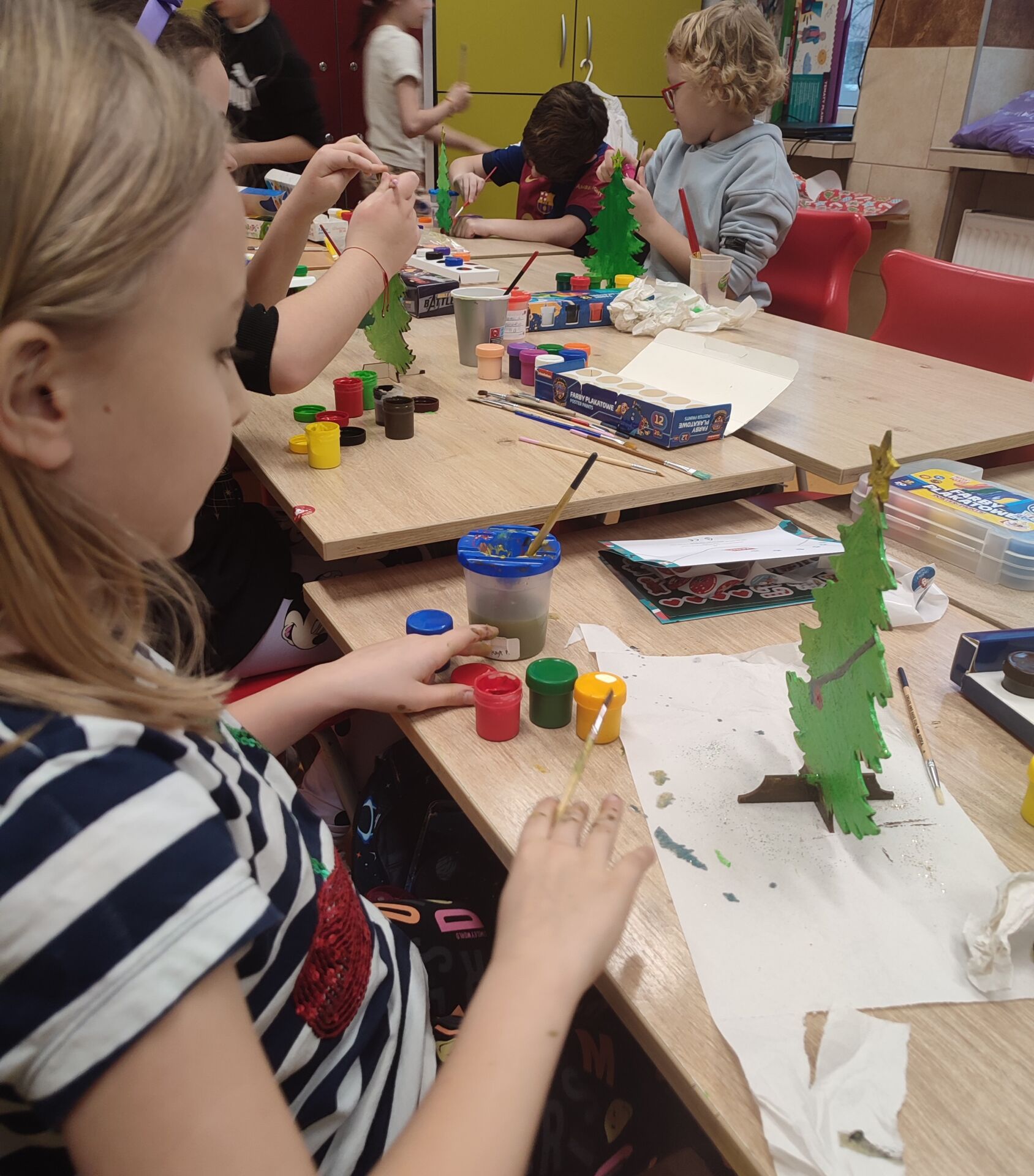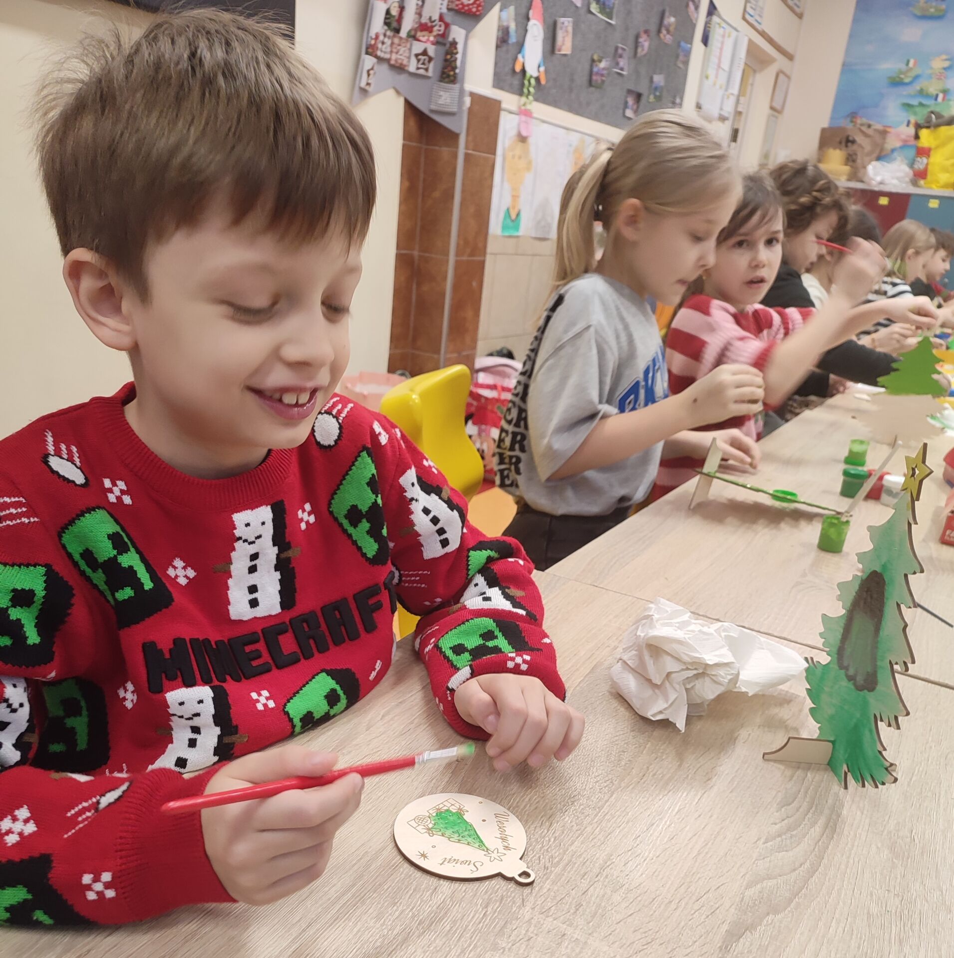 W klasie 2B odbyły się klasowe warsztaty świąteczne, podczas których uczniowie z wielkim zaangażowaniem wykonywali świąteczne ozdoby. W sali od razu zapanował radosny, świąteczny klimat pełen kreatywności i uśmiechów. Mamy nadzieję, że wykonane dekoracje pięknie ozdobią domy naszych uczniów i wprowadzą wszystkich w magiczny czas świąt. 🎄