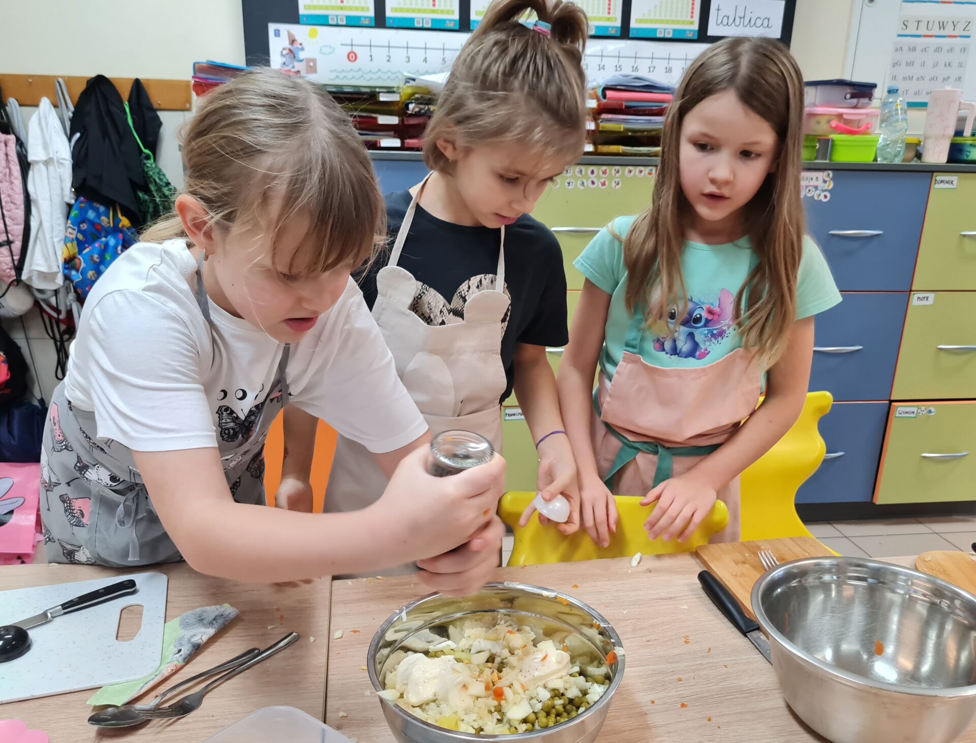 W ramach projektu „Śladami Wielokulturowego Podlasia” odbyły się kolejne warsztaty „Smaki Podlasia”. Tym razem uczniowie z klasy 1Z podjęli się zadania przygotowania tradycyjnej sałatki jarzynowej. Była to doskonała okazja do pogłębiania wiedzy o kulinarnym dziedzictwie naszego regionu oraz integracji. Warsztaty potwierdziły, że nic tak nie łączy, jak wspólna praca i satysfakcja z pysznego rezultatu.