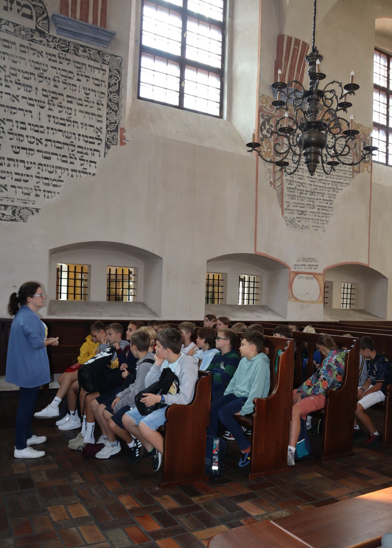 22 września kl. 5C, 5L i 6A były na wycieczce w Tykocinie. Zwiedzanie rozpoczęliśmy od Synagogi i Domu Talmudycznego. Potem spacer po Tykocinie i piesza wędrówka na zamek, gdzie w restauracji mieliśmy smakowity obiad, a na deser lody. Następnie zwiedzanie zamku i warsztaty.