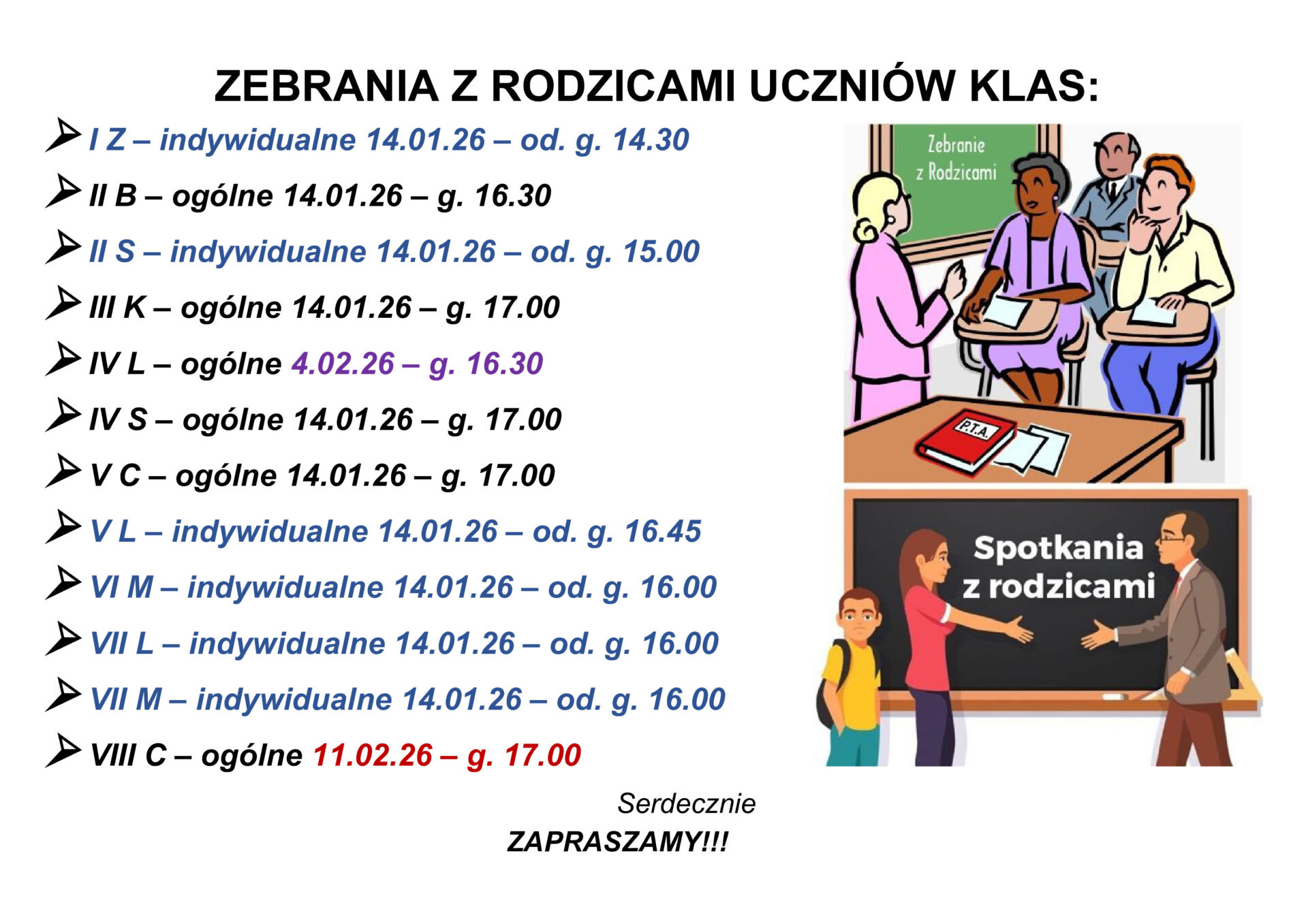 ZEBRANIA Z RODZICAMI UCZNIÓW KLAS: